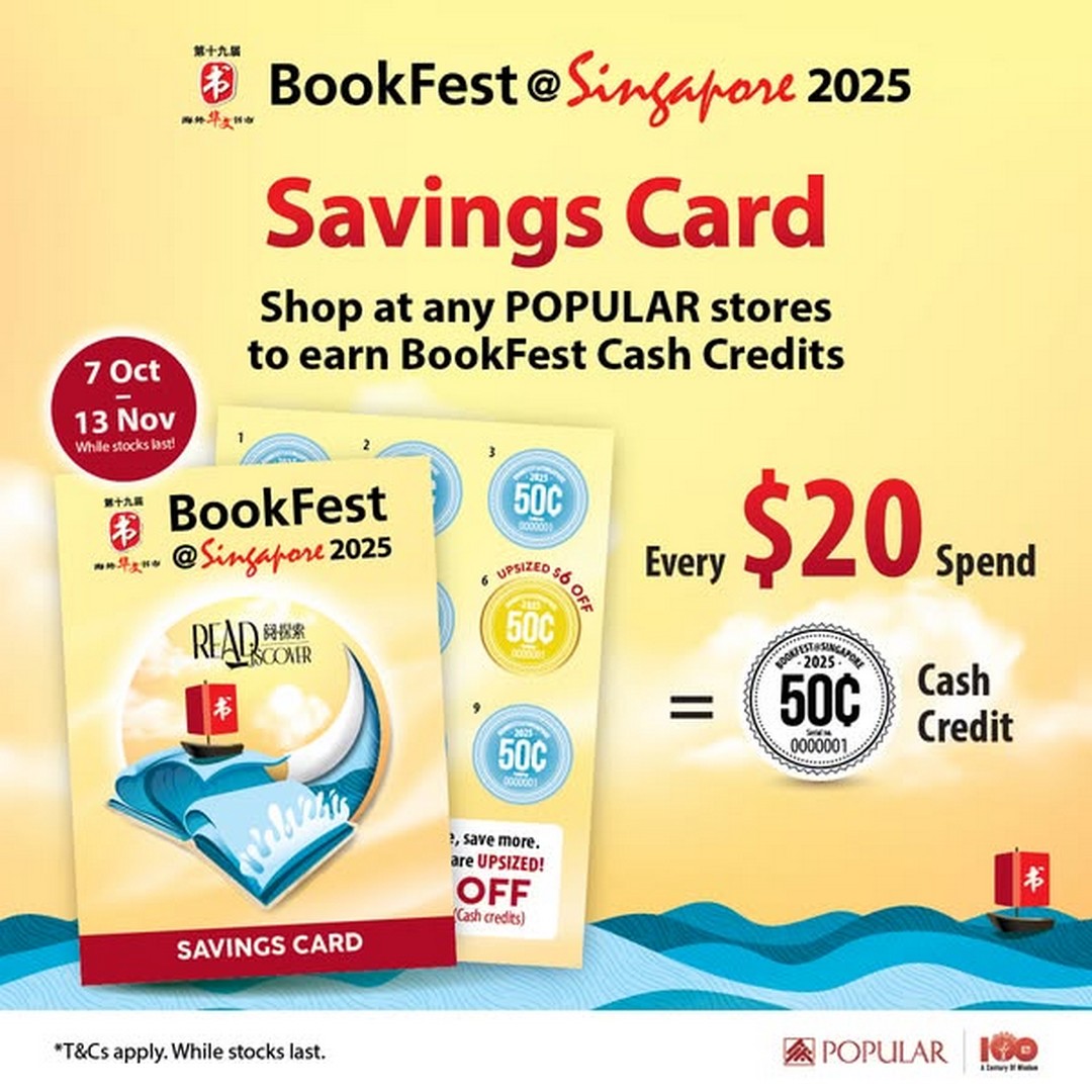 One of the standout features of this year’s BookFest is the Savings Card promotion, which runs from 7 October to 13 November 2025 across all POPULAR Bookstore outlets. The concept is straightforward: for every $20 nett spent in a single receipt, shoppers earn 50¢ BookFest Cash Credit. These credits can later be redeemed during the main BookFest event from 14 to 23 November 2025 at the POPULAR Bras Basah Complex. This simple reward system makes it easy for shoppers to maximise their savings while indulging in their love of reading.