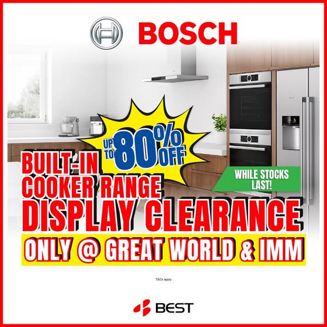 In conclusion, whether they are looking to replace an old cooker, upgrade their kitchen setup, or simply take advantage of unbeatable deals on premium appliances, shoppers will find the BEST Denki Display Clearance Sale an event worth attending. From 14 August 2025 onwards, the Great World and IMM outlets are offering Bosch Built-in Cooker Ranges at discounted prices, providing a rare opportunity to invest in high-quality appliances without breaking the bank.