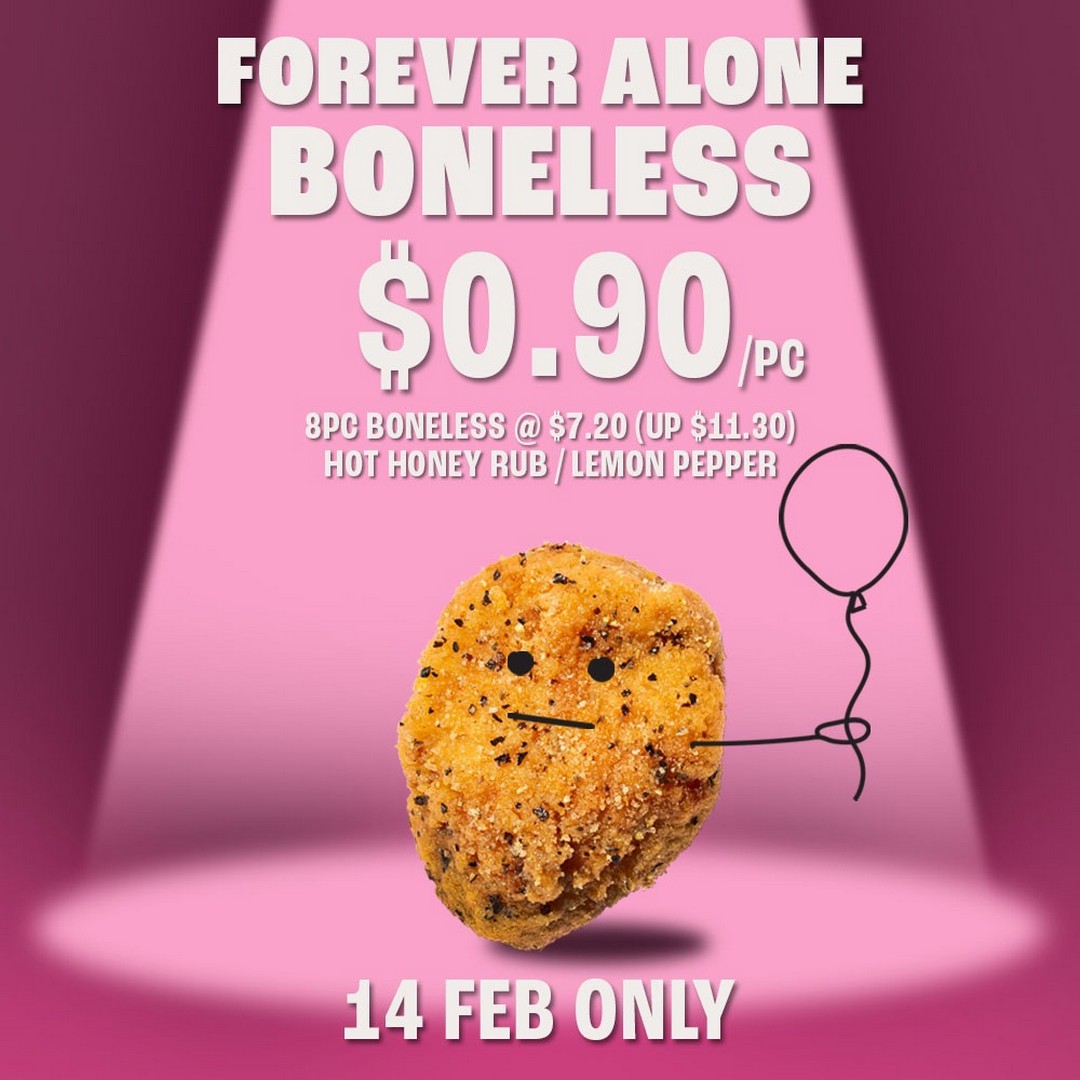 Here’s the deal in a nutshell: for just $7.20, you can enjoy 8 boneless wings in a fixed flavour combination of Hot Honey Rub and Lemon Pepper. Whether you’re flying solo this Valentine’s Day, prefer a quiet night in, or just want to reward yourself for surviving another year, this promotion makes it easy to celebrate yourself with one of Singapore’s most popular wing chains.