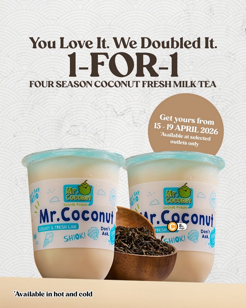This Mr Coconut 1-for-1 Four Season Coconut Fresh Milk Tea promotion is a straightforward but appealing offer that fits well into Singapore’s fast-paced lifestyle. It is not overly complicated, nor does it require extensive conditions — just a clear, time-limited opportunity to enjoy a popular beverage at better value.