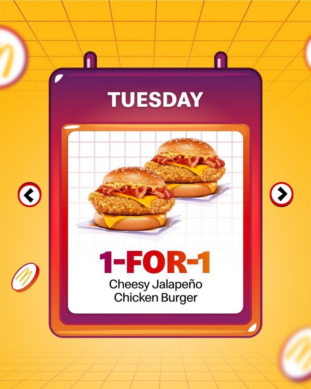 Tuesday, 16 December, brings the 1-FOR-1 Cheesy Jalapeño Chicken Burger. This burger has quietly built a loyal following thanks to its balance of spice, crunch, and melted cheese. It is often described as one of the more underrated items on the menu, which makes this deal particularly attractive. Whether it is shared with a friend or enjoyed as a double portion, this is a solid option for lunch or dinner.