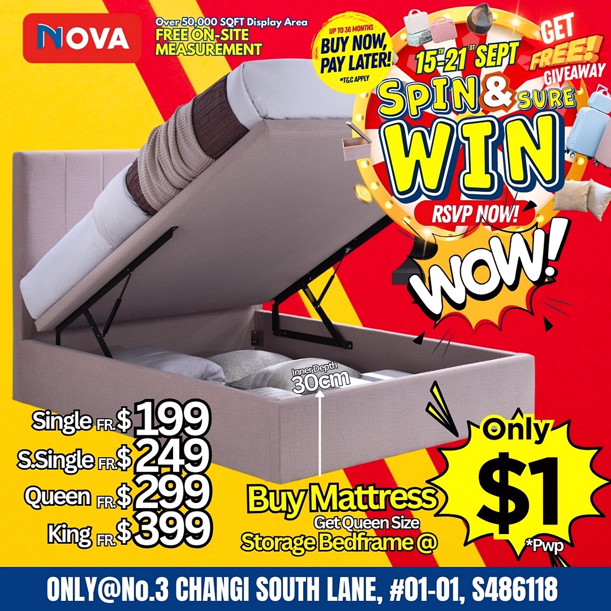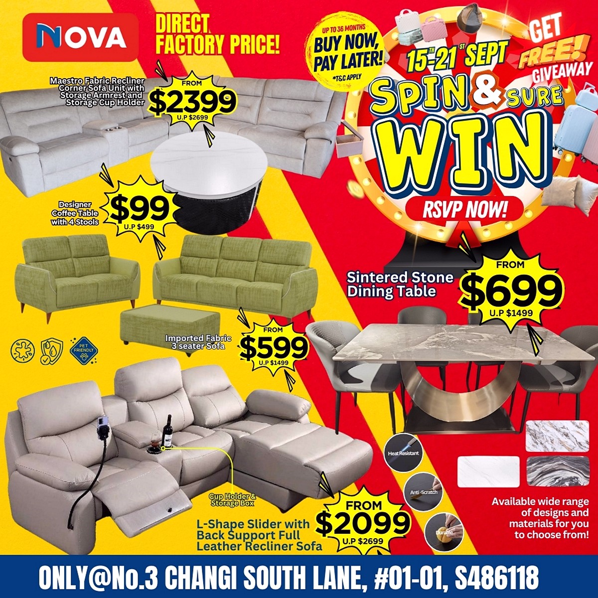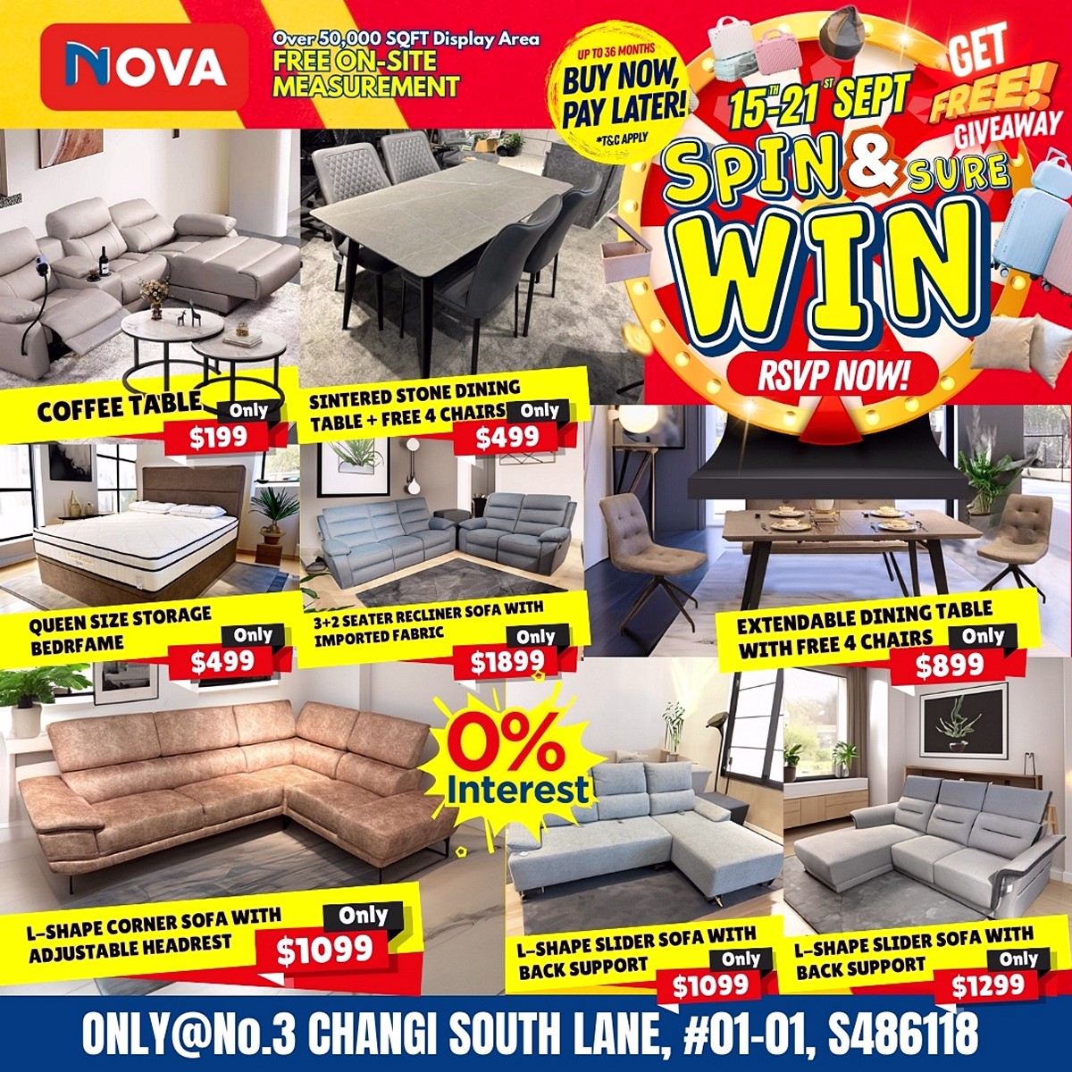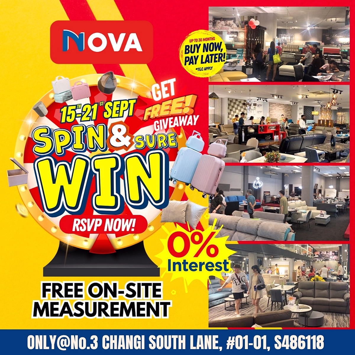 That’s why the NOVA Furniture Spin & Sure Win Sale, happening from 15th to 21st September 2025 at their Changi showroom, feels almost suspicious. Discounts everywhere, freebies left, right and centre, and even a spin wheel that guarantees prizes? It almost sounds like a carnival disguised as a clearance sale. But yes, it’s real – and it’s happening.