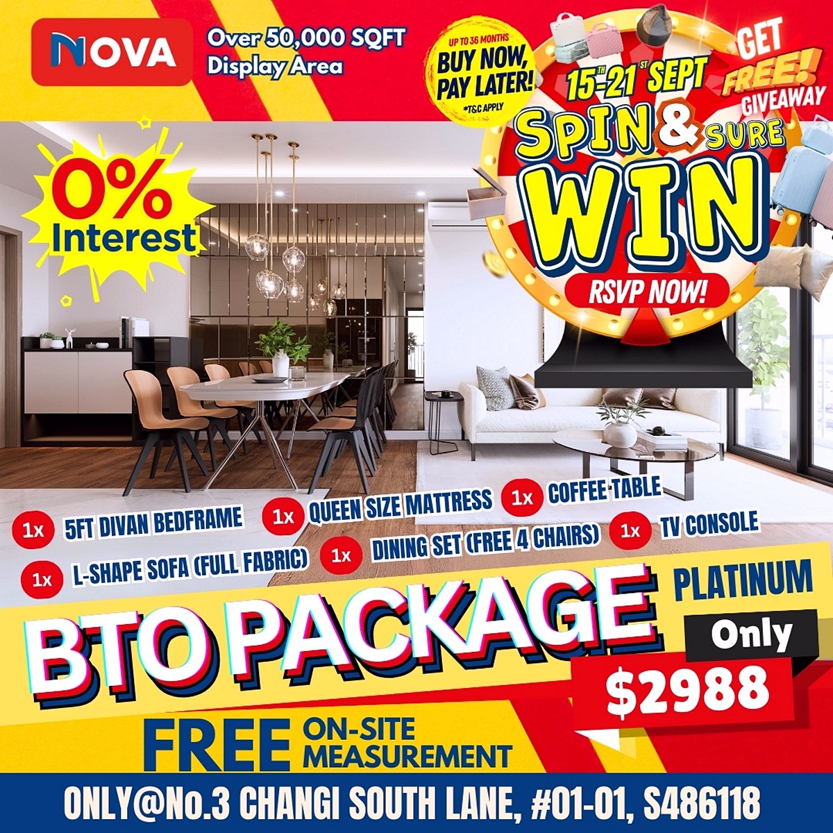I once chatted with a young couple at a NOVA event who were in the middle of furnishing their new BTO. Renovation had already drained their budget, and they were worried about how much the furniture would cost. They came “just to browse,” but after realising the deals, they ended up with a BTO package, a free mattress, and a spin prize of a brand-new luggage set.