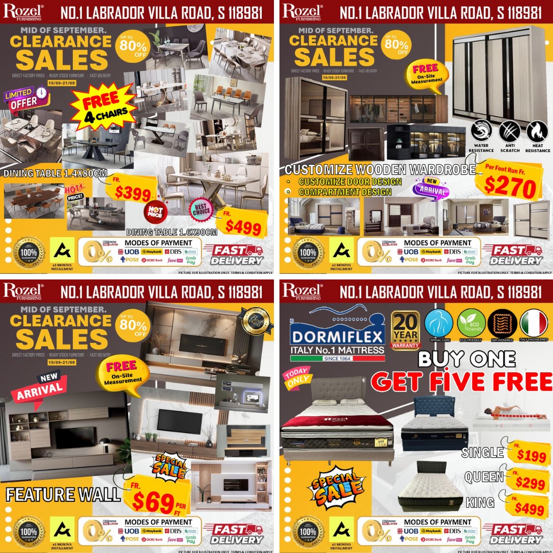 The Rozel Factory-Direct Madness Clearance Sale runs from 15–21 September 2025 at Labrador Villa, with daily opening hours from 11:30 am to 9:00 pm. Located at 1 Labrador Villa Road, Singapore 118981, the showroom offers a welcoming environment where shoppers can browse at leisure while enjoying assistance from Rozel’s professional sales team.