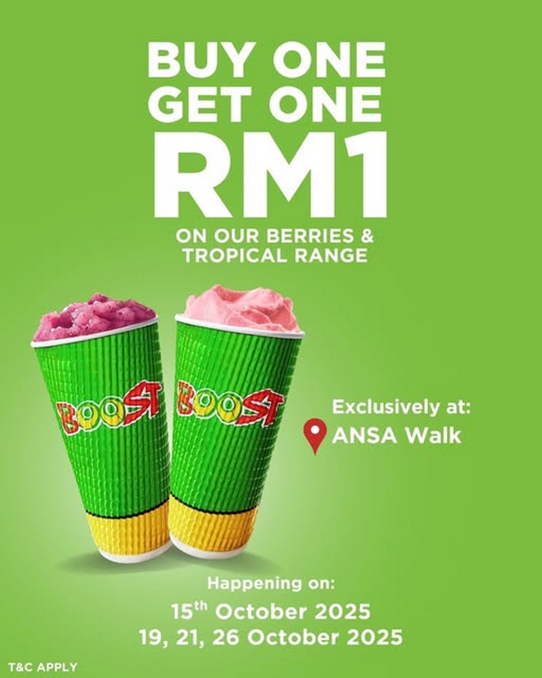 For fans of fresh, fruity, and invigorating beverages, October brings an exciting reason to indulge at Boost Juice Bars Malaysia. The brand is celebrating the grand opening of their newest outlet at ANSA Walk, and they’ve rolled out an irresistible promotion that’s bound to tempt both regular customers and newcomers alike. For a limited time, Boost Juice Bars is offering a Buy 1, Get 1 for RM 1 deal on their popular Berries & Tropical Range. This is the perfect opportunity to double up on your favourite drinks, try something new, or bring a friend along to share the fruity fun.