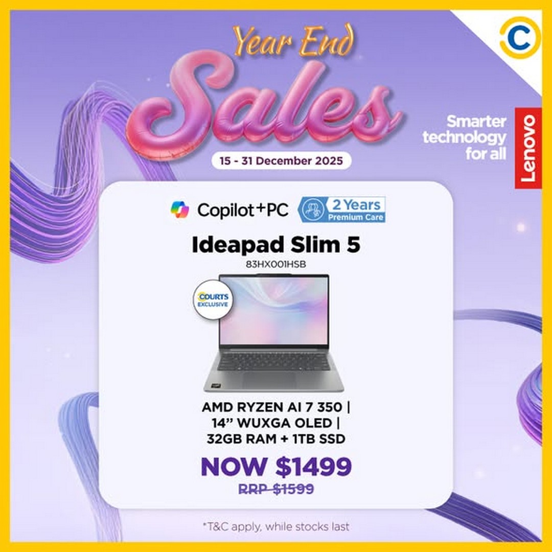 Ultimately, this sale is not about buying technology for the sake of it. It is about equipping daily life with tools that work better, faster, and more reliably. With up to $200 off selected Lenovo models and free gifts included, the Lenovo x COURTS Year-End Sale makes upgrading feel both sensible and rewarding. For shoppers in Singapore who value practicality, quality, and value for money, this is a deal well worth enjoying before it ends.