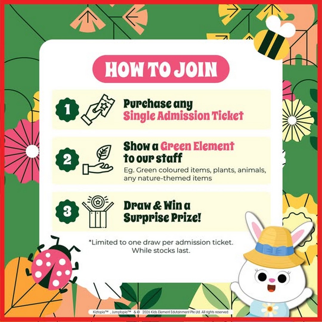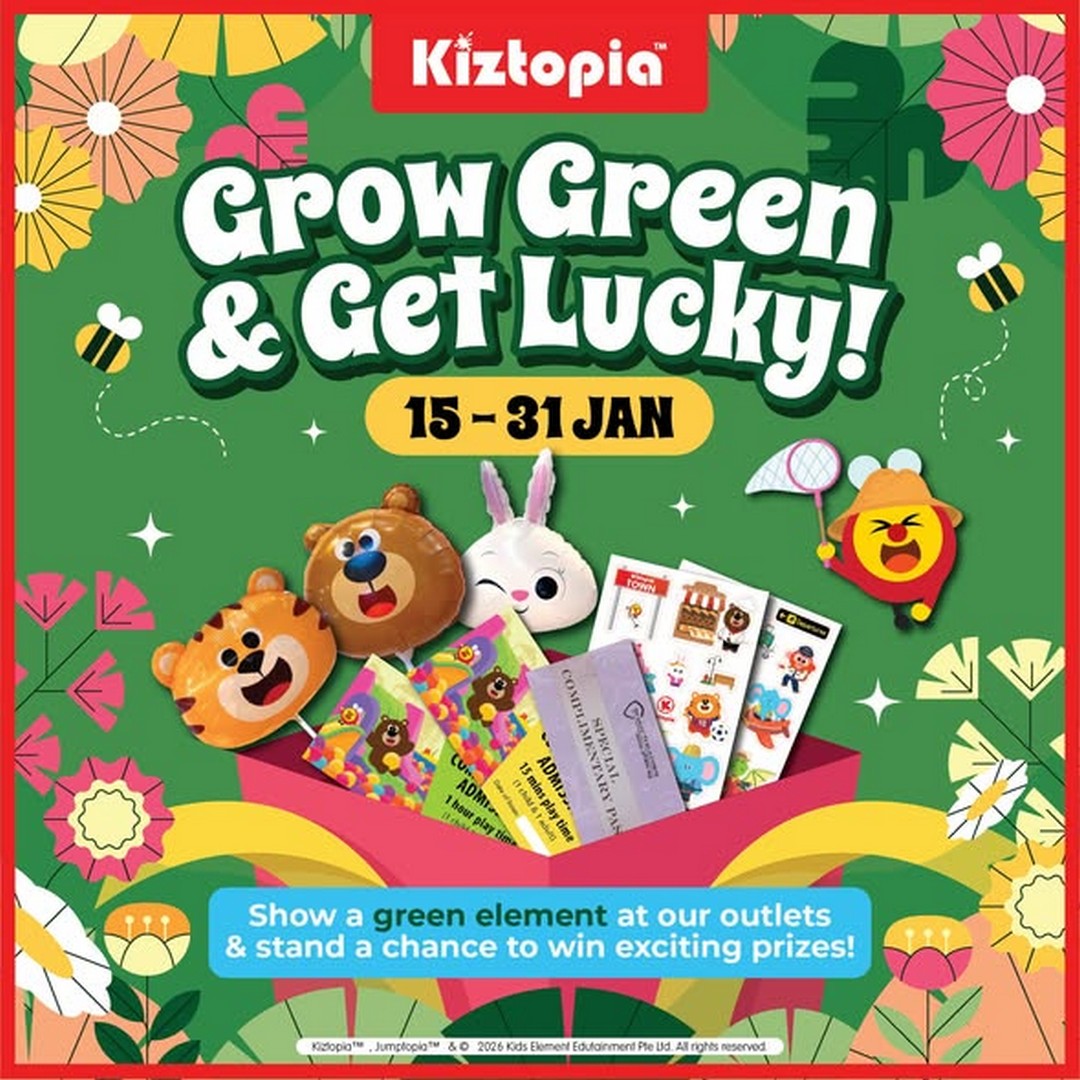 If you’re on the hunt for a fun-filled family outing that also brings a little extra excitement, Kiztopia Singapore has just the event for you. From 15 to 31 January 2026, Kiztopia is inviting kids and parents alike to join their “Go Green & Score BIG Prizes” promotion—a playful, nature-themed activity that rewards creativity, participation, and a touch of green inspiration.