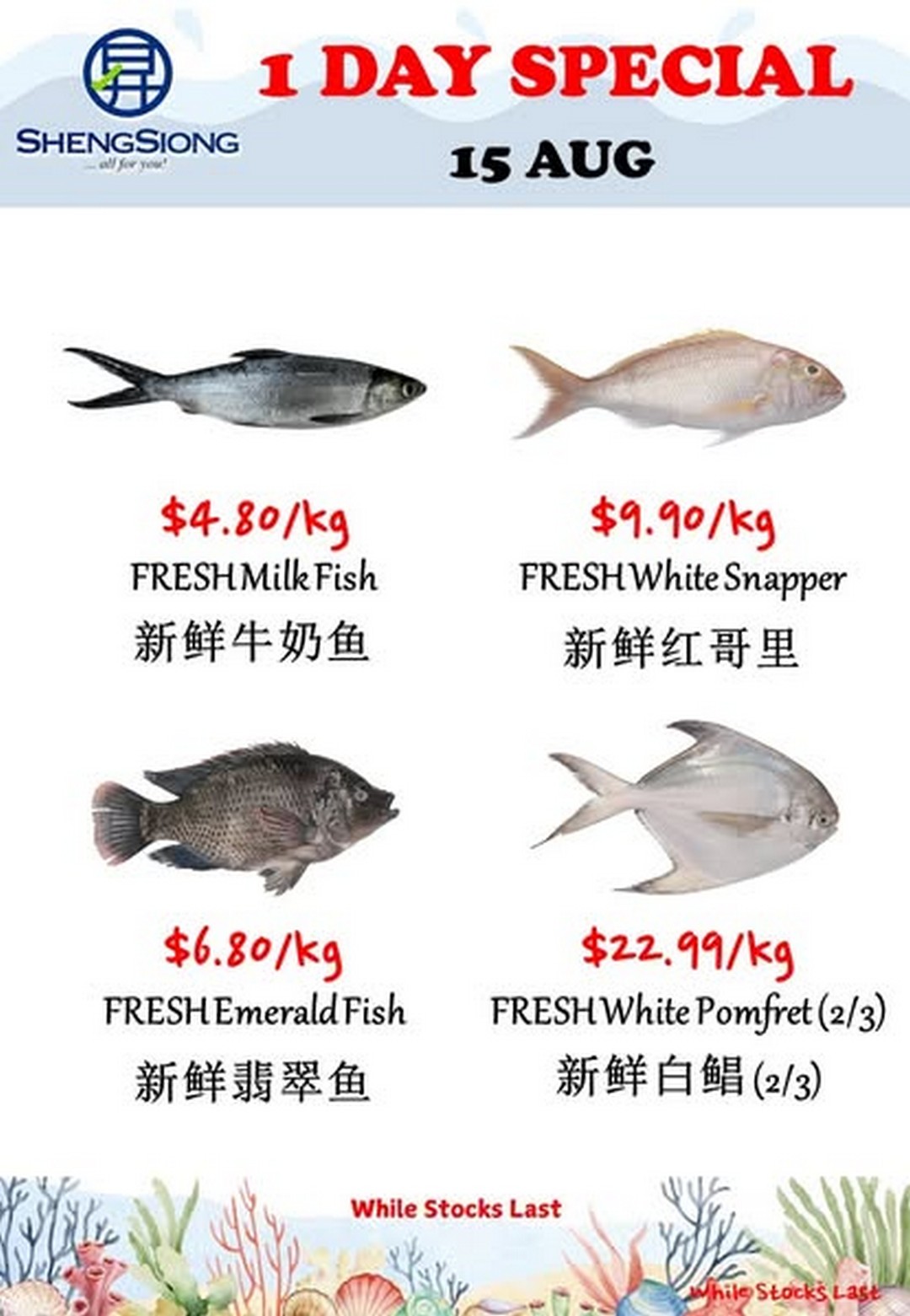 Plus, Sheng Siong frequently complements their seafood promotions with offers in other departments — such as vegetables, sauces, and condiments — so shoppers can gather all they need for a complete meal in one trip.