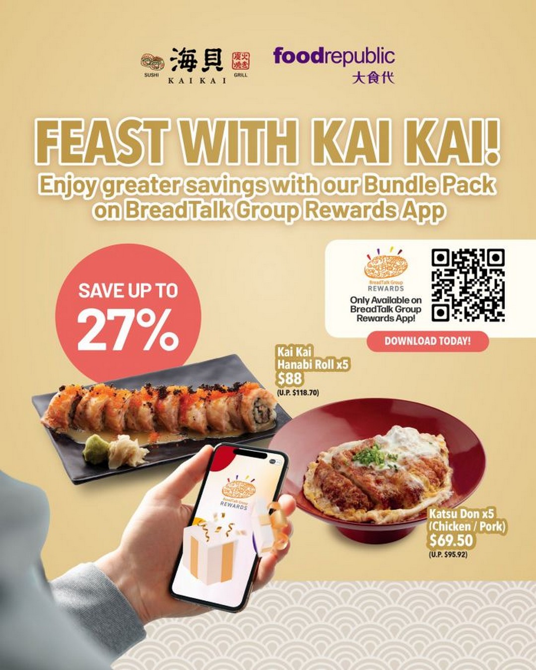 But the promotions don’t stop there. Through the BreadTalk Group Rewards app, Kai Kai Sushi & Grill is also offering bundle deals on some of their best-loved dishes. If you’re a fan of sushi rolls, the Kai Kai Hanabi Roll x5 is available for $88 (usual price $118.70), allowing you to save a substantial amount. For those who prefer hearty rice bowls, Katsu Don x5 (Chicken or Pork) is priced at $69.50 (usual price $95.92). That’s up to 27% savings when purchased via the app – perfect for planning meals ahead or sharing with family and friends at home.