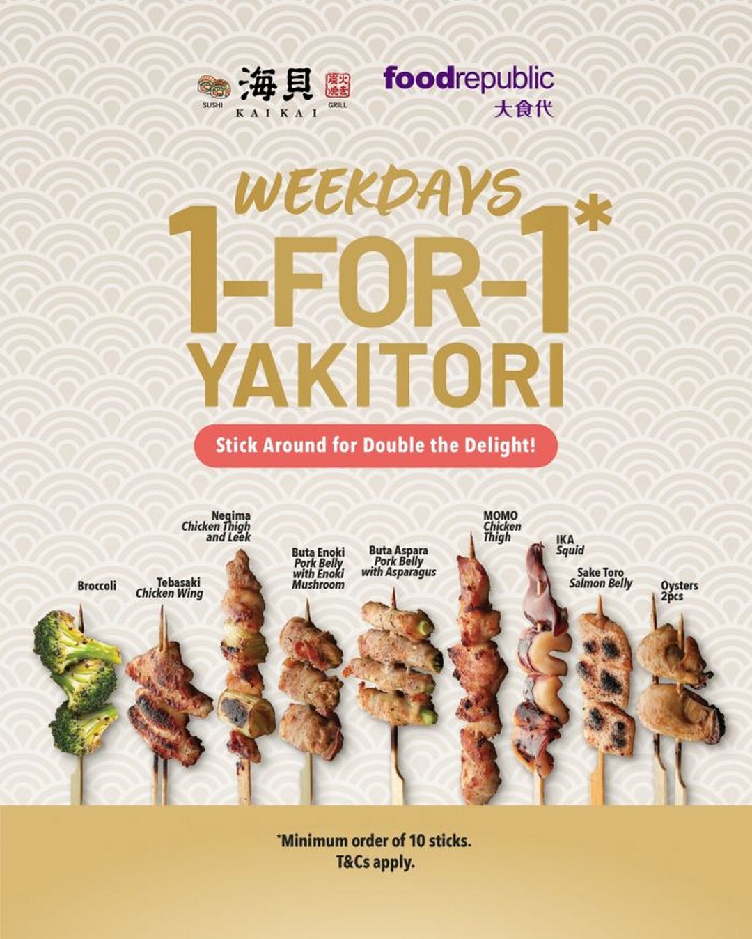 So, whether planning a lunch break in Orchard, a casual dinner with colleagues, or looking to indulge in Japanese flavours from home via the app, Kai Kai Sushi & Grill at Food Republic Wisma Atria offers a deal too good to pass up. Don’t miss the chance to double your yakitori enjoyment and take advantage of the bundle deals before the promotion ends on 30 September 2025.