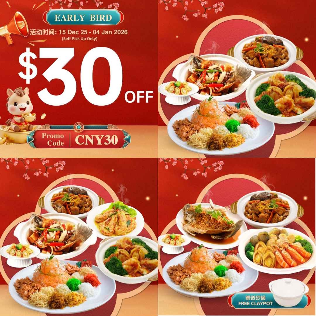 The highlight here is not just the food itself but the added value of the $30 OFF promotion. By simply opting for self-pickup, diners can enjoy substantial savings on a festive feast without compromising quality. The promotional code “CNY30” is all that is needed to redeem this discount, making it extremely straightforward to enjoy. It’s a small effort for a significant reward – saving money while indulging in a carefully prepared meal that marks the season of reunion and abundance.