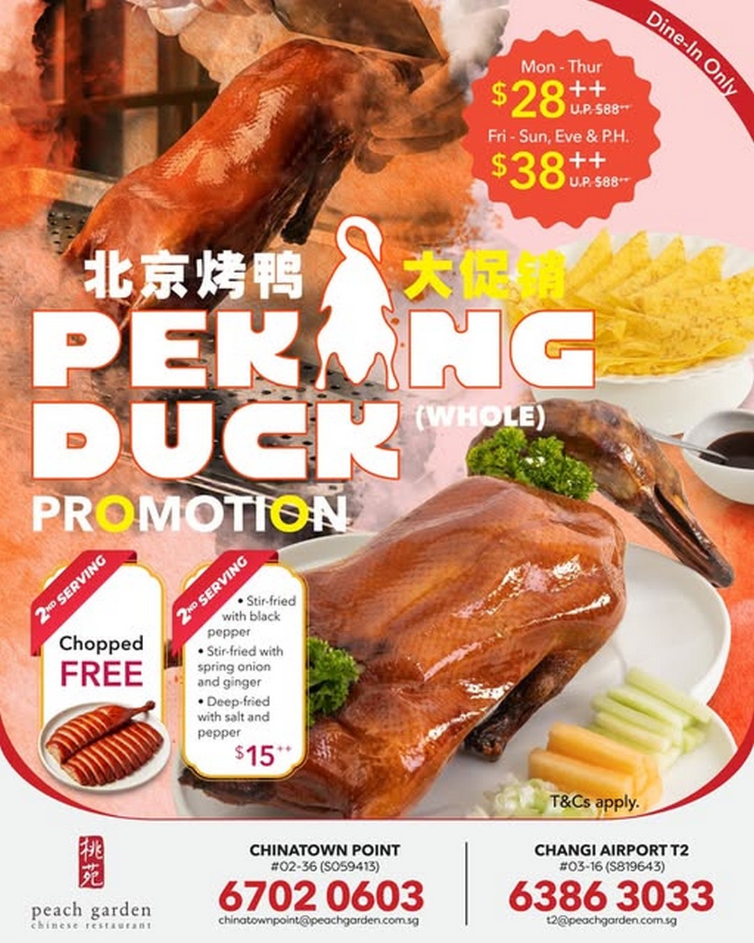 Remember, the promotion runs from 15 October 2025 onward, is available dine-in only, and can be enjoyed at Chinatown Point and Changi Airport Terminal 2. It’s a perfect opportunity to experience the classic roast duck in all its glory while enjoying an unbeatable price. Whether for a casual meal, a celebratory feast, or simply a treat for yourself, Peach Garden’s roast duck promotion is sure to delight every palate.