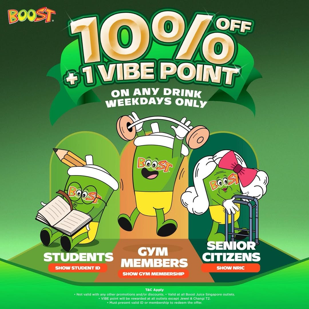 So why wait? Head down to any Boost Juice Bar outlet in Singapore, flash your student card, gym membership, or NRIC, and enjoy the perks. Healthy living has never been this rewarding, convenient, and delicious!