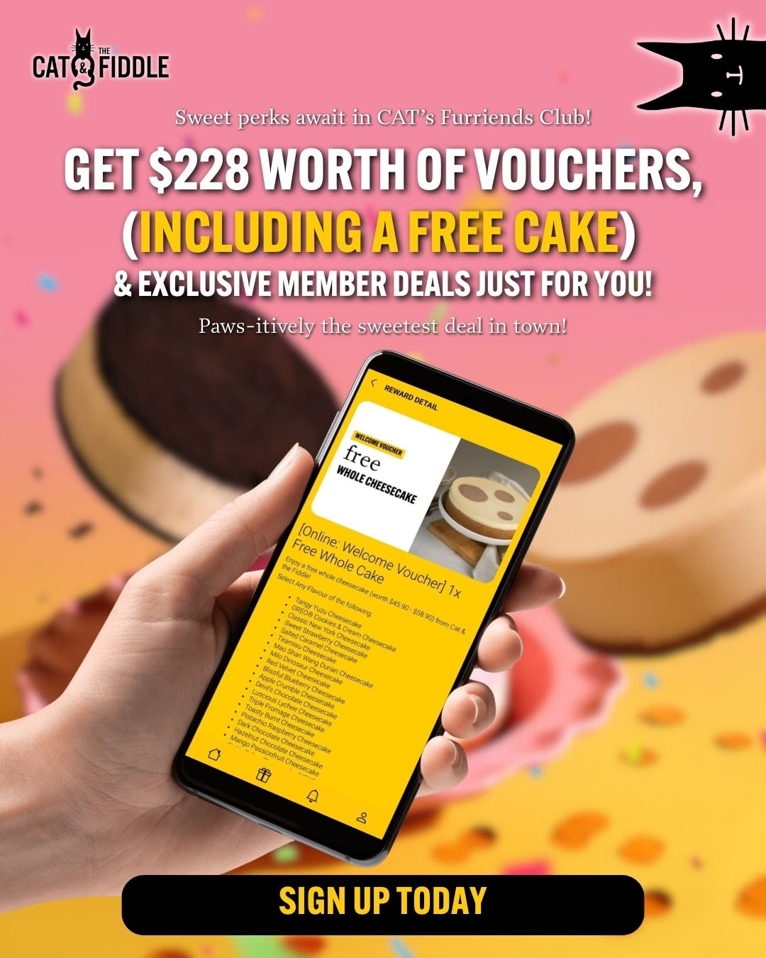 If Cat & the Fiddle’s desserts have been on your list, now is the perfect time to become a member and enjoy exclusive benefits. For $50, members receive a carefully curated selection of vouchers valued at $228, designed to enhance their dessert experience. With options for whole and petite cheesecakes, multiple slice vouchers, discount vouchers, and free deliveries, every member can find something that suits their taste and needs.