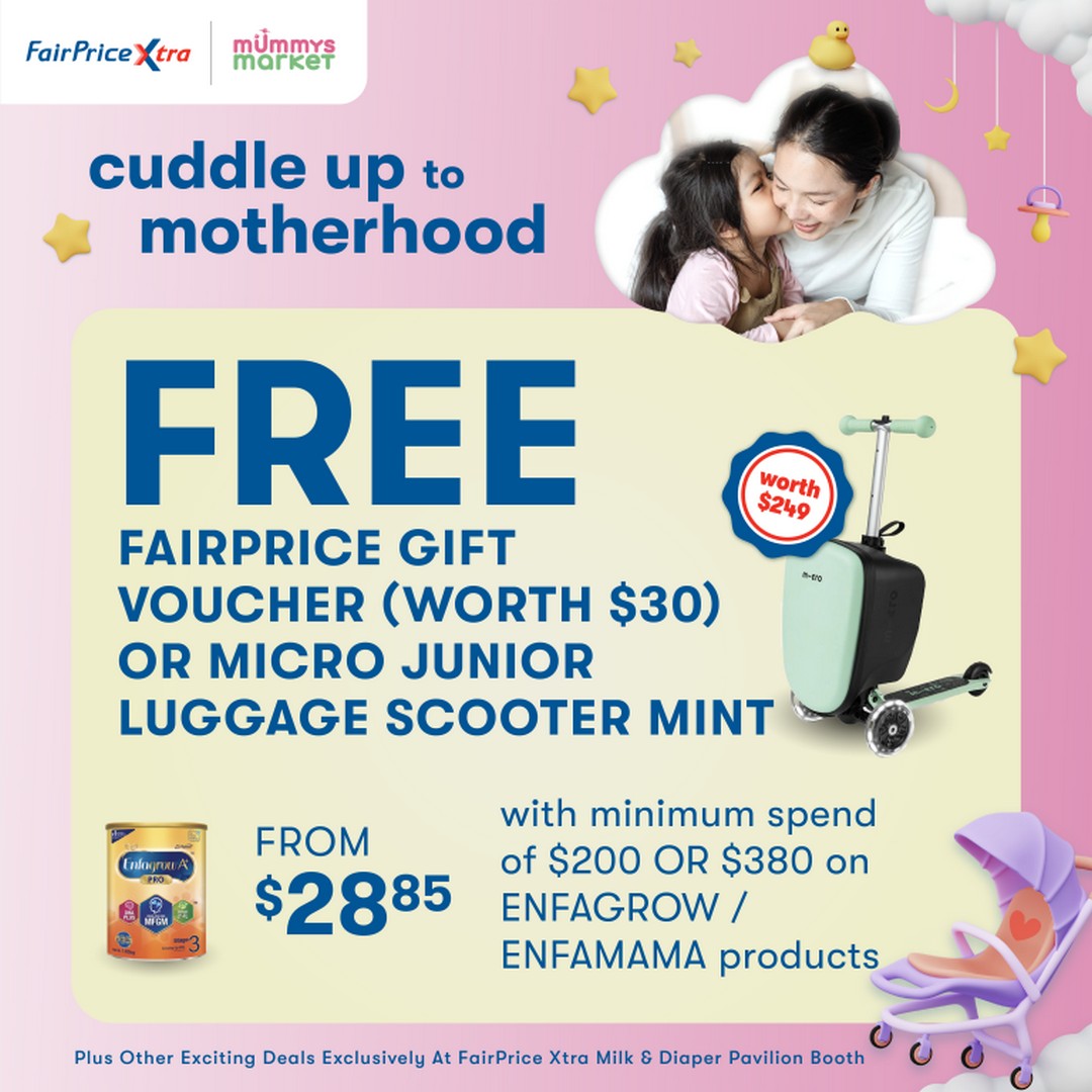 Even more exciting are the Enfagrow and Enfamama offers. Depending on spending thresholds, parents can choose between a $30 FairPrice voucher or a Micro Junior luggage scooter worth $249. Whether it’s a little treat for themselves or a practical reward for their child, these redemption choices make the purchase feel rewarding on multiple levels.