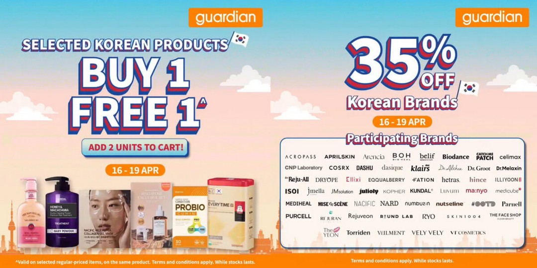 From 16 to 19 April 2026, shoppers in Singapore can enjoy 35% off and Buy 1 Free 1 offers across participating Korean health and beauty brands at Guardian outlets islandwide. It is a short four-day campaign, which makes timing quite important, especially if there are already specific products that have been on the radar for a while.