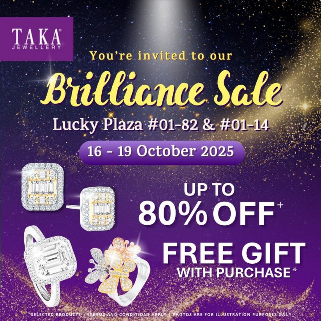 For those who appreciate quality, style, and smart shopping, the TAKA Jewellery Brilliance Sale is an event that cannot be missed. Mark your calendar for 16 to 19 October 2025, head to Lucky Plaza, and make the most of this limited-time chance to shine with stunning jewellery and incredible savings.