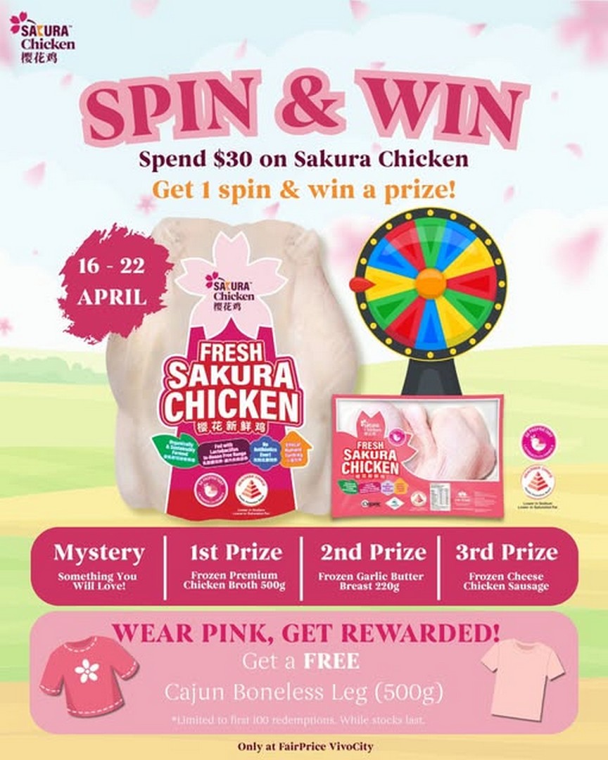 Running from 16 to 22 April 2026, this limited-time Spin & Win promotion at FairPrice VivoCity is designed to reward shoppers who already enjoy quality ingredients, especially those who appreciate the freshness and taste that Sakura Chicken is known for. What makes this campaign particularly appealing is how simple it is to participate, yet how generous the rewards can be.