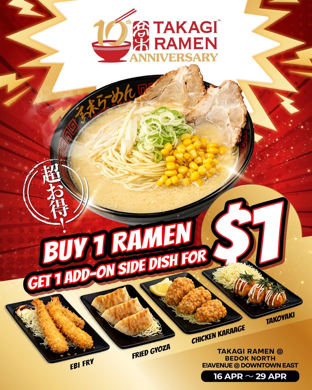 For anyone looking for a fuss-free dining deal that delivers both comfort and value, this is certainly one to consider. Whether it is a casual meal after work, a weekend outing, or simply a craving for ramen, Takagi Ramen’s Buy 1 Ramen Get 1 Side Dish for $1 promotion offers a reason to head out and enjoy a satisfying meal.
