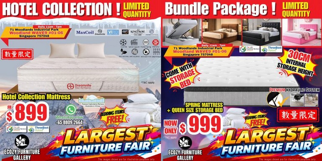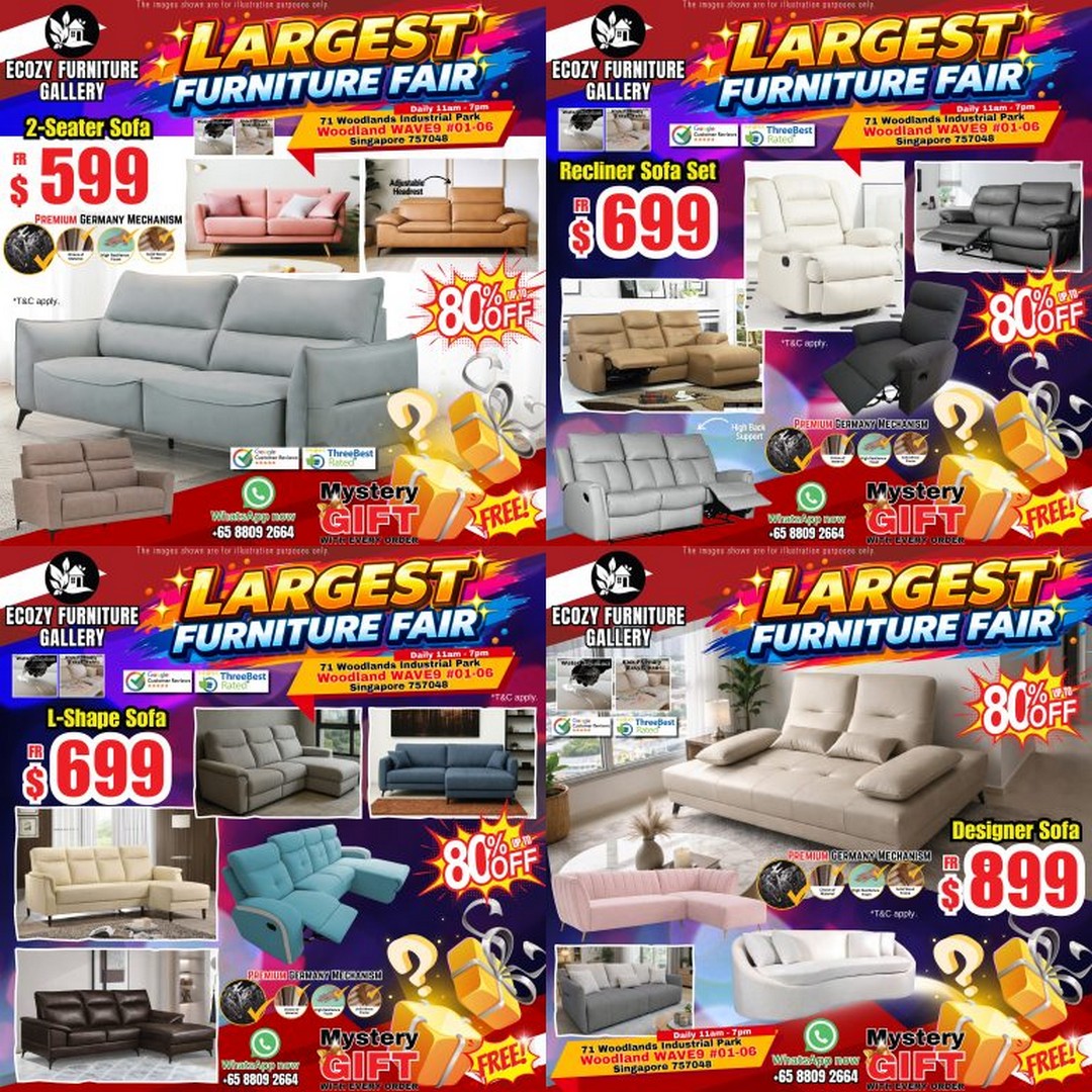 At its core, this event by Ecozy Furniture Gallery is not just about discounts. It is about offering practical solutions at a time when many people are looking to make their homes more functional and comfortable without overspending. For those willing to act quickly, it could be one of the more worthwhile furniture deals currently available in Singapore.