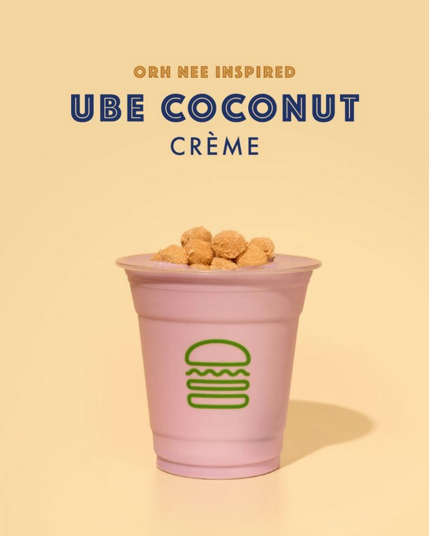 The Ube Coconut Crème shake is one of the standout items. Inspired by traditional “orh nee” flavours, it blends ube and coconut with Shake Shack’s vanilla frozen custard. Topped with mochi and kinako powder, it delivers a creamy and chewy texture combination that feels like dessert and drink in one.