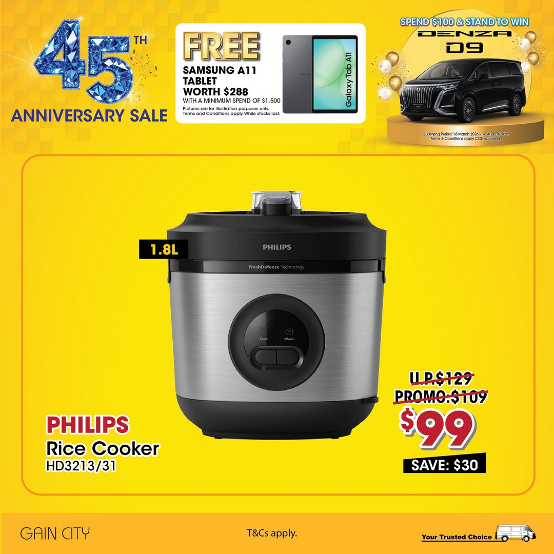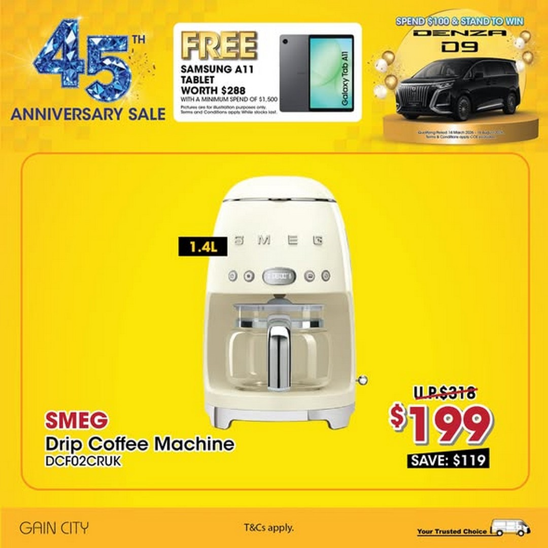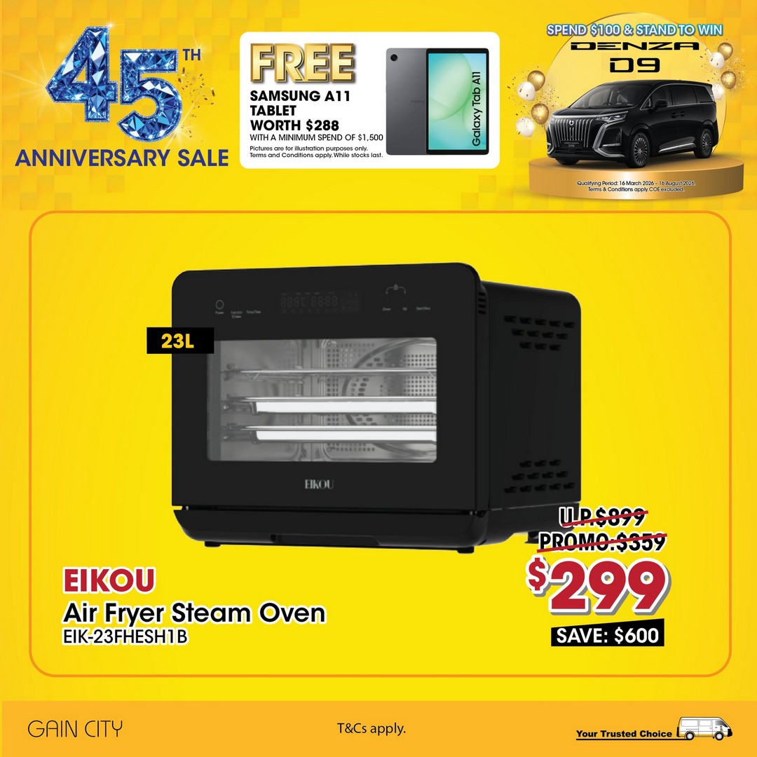 Singaporeans looking to upgrade their home appliances and kitchen gadgets have a reason to celebrate this year. Gain City, one of the country’s leading electronics and home appliance retailers, is marking its 45th anniversary in style, offering some of the most attractive deals seen in recent years. From cash discounts to free gadgets and even a chance to drive an electric vehicle, their anniversary promotion promises something for every savvy shopper.