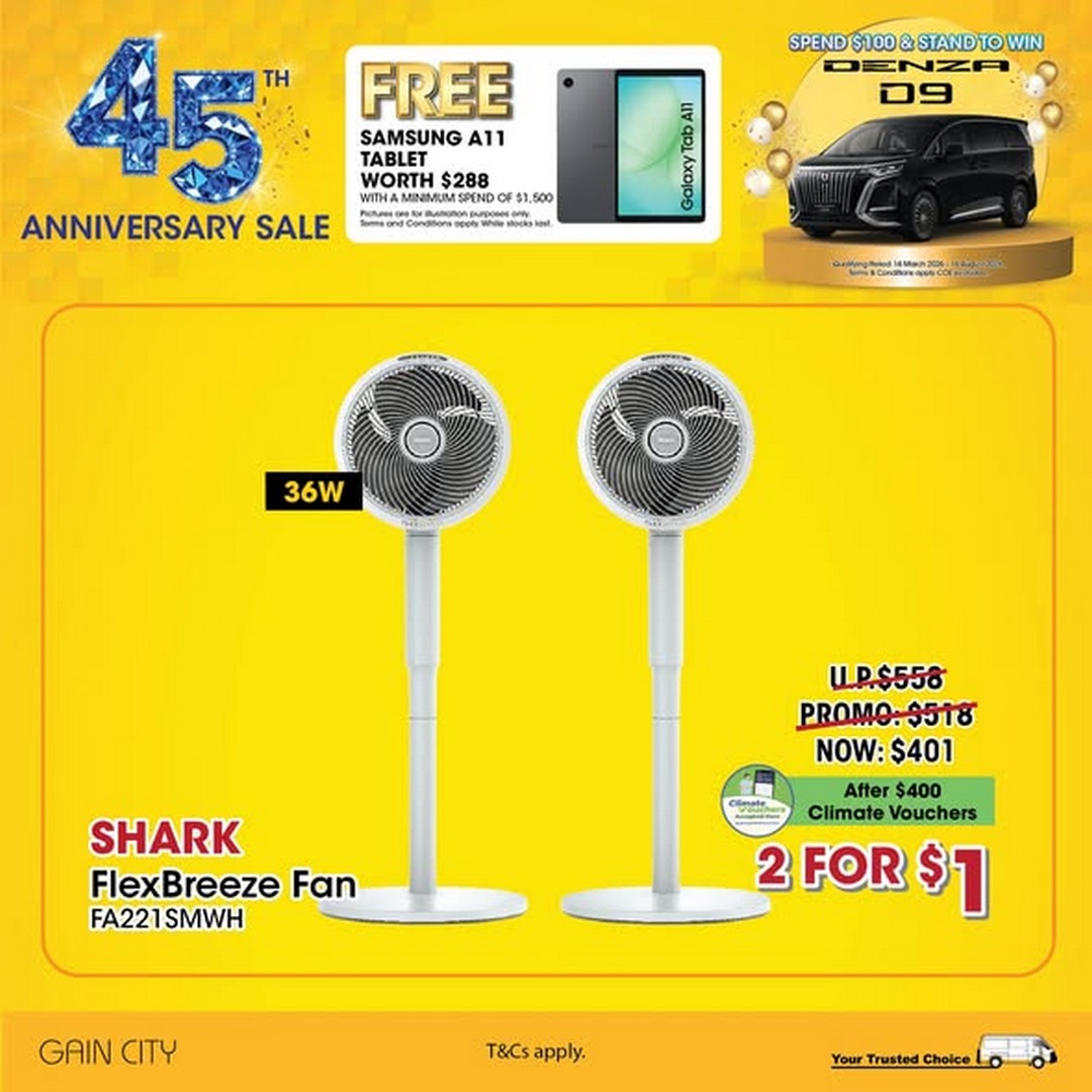 - Venue: Gain City showrooms across Singapore or online at gaincity.com/45th-anniversary-sale
