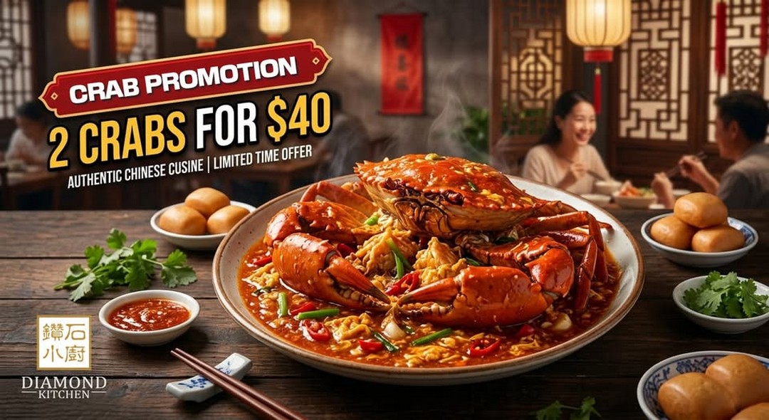 Seafood lovers in Singapore, get ready for one of the most anticipated promotions to hit your taste buds this March. Diamond Kitchen has answered the calls of crab enthusiasts everywhere and is bringing back a promotion that’s sure to make waves: two whole, succulent crabs for just $40. Yes, it’s not a typo — $40 for two freshly cooked crabs.