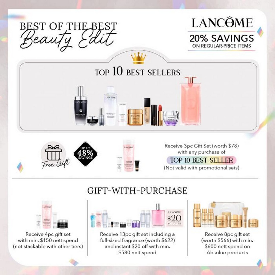 The way the gift-with-purchase works is simple: shoppers just need to purchase the Top 10 Best Sellers or reach the brand-specific nett spend requirement, and they will receive complimentary gifts. These gifts are a great way to experiment with new skincare or makeup products that might not have been on their radar before. However, it’s important to note that the gift sets are not applicable with promotional sets, so planning purchases strategically will maximise benefits.