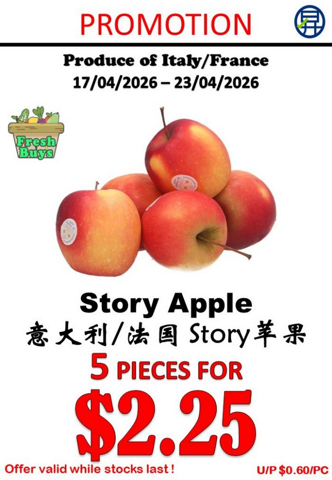 The Story Apple from Italy and France is one of the most attractive bulk deals in this promotion at 5 pieces for $2.25. Apples are one of the most versatile fruits, suitable for snacking, baking, or even slicing into salads.