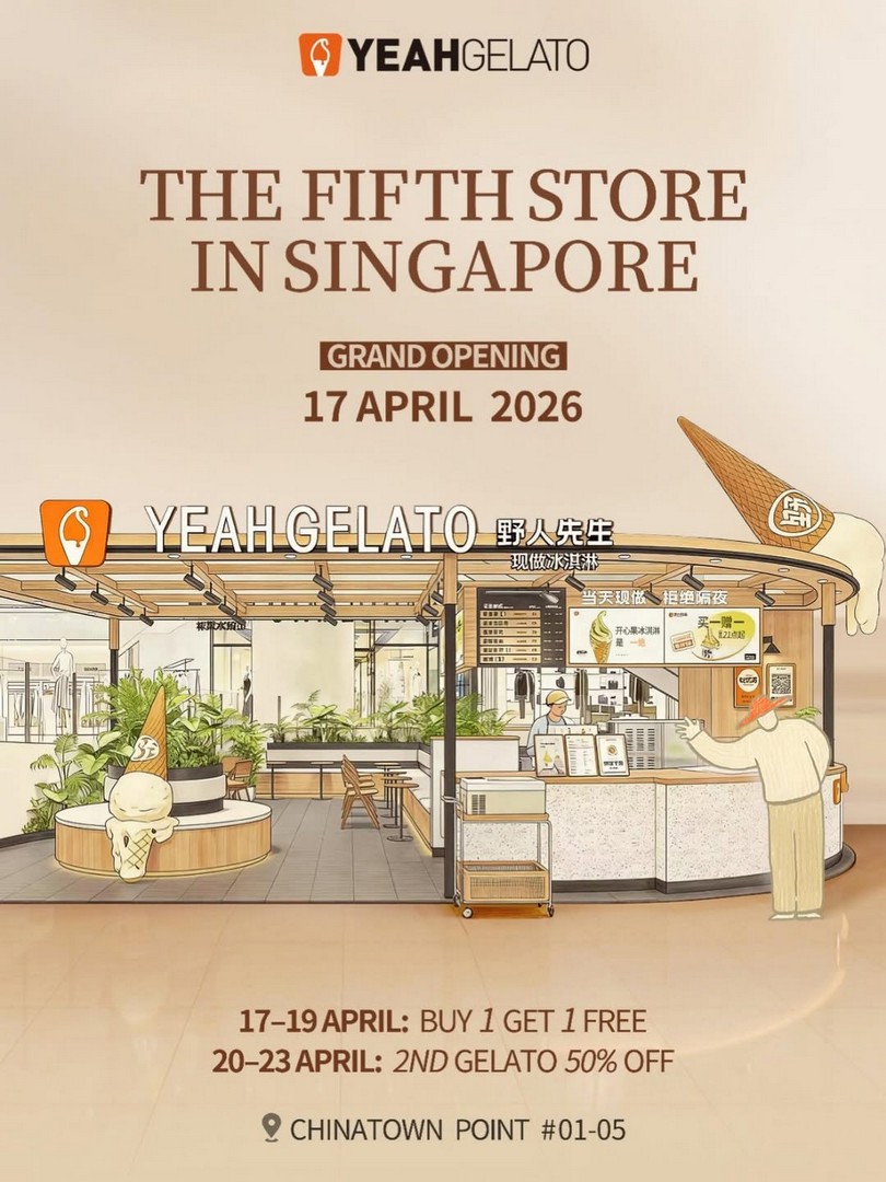 If there is one thing that never really goes out of style in Singapore’s food scene, it is dessert. Whether it is after a heavy meal in Chinatown, a quick afternoon pick-me-up during a shopping trip, or just a casual treat to cool down in the humid weather, gelato always finds its place. And now, there is a new reason to make a stop at Chinatown Point because YEAH GELATO has officially opened its fifth store in Singapore, bringing along a limited-time opening promotion that is hard to ignore.