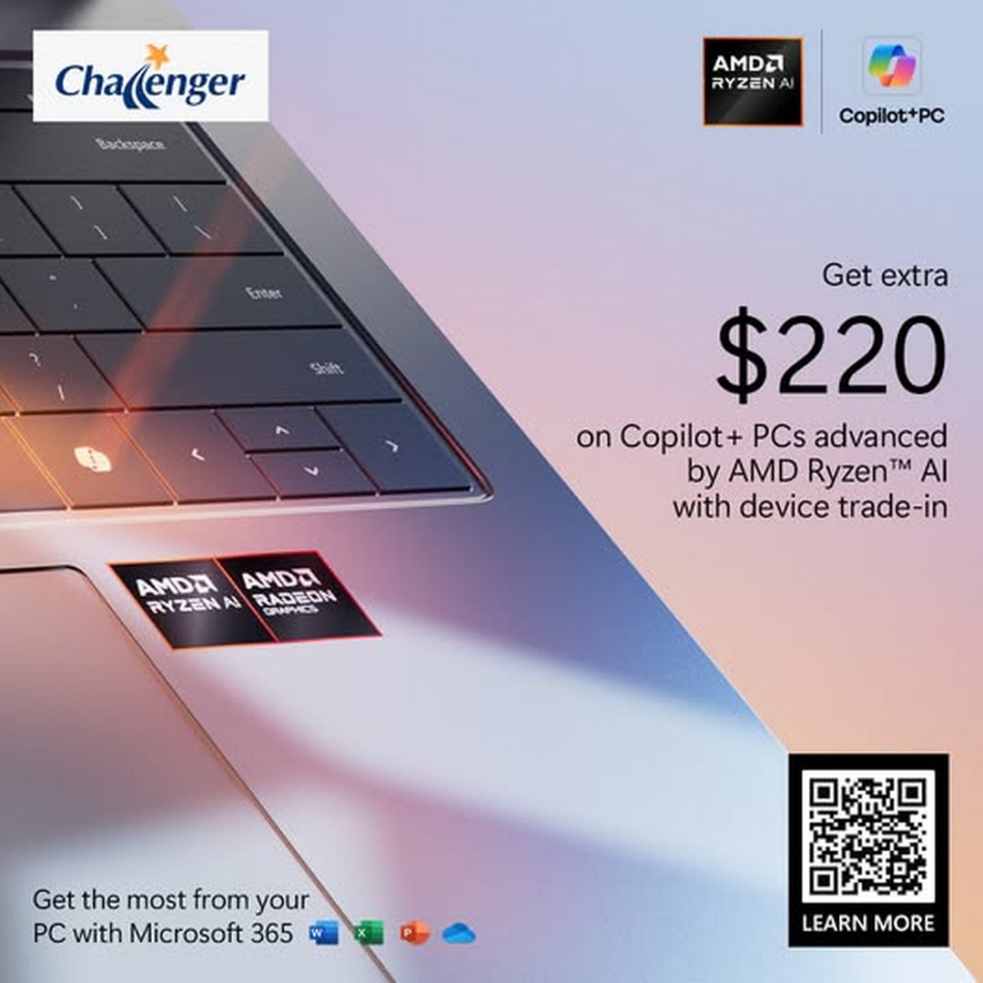 This November, Challenger Singapore is making it easy for tech lovers to step into a smarter, faster, and more efficient digital world. Don’t let this opportunity pass by—trade in, save big, and experience the difference that a new Windows 11 PC and a Lenovo x AMD device can make.