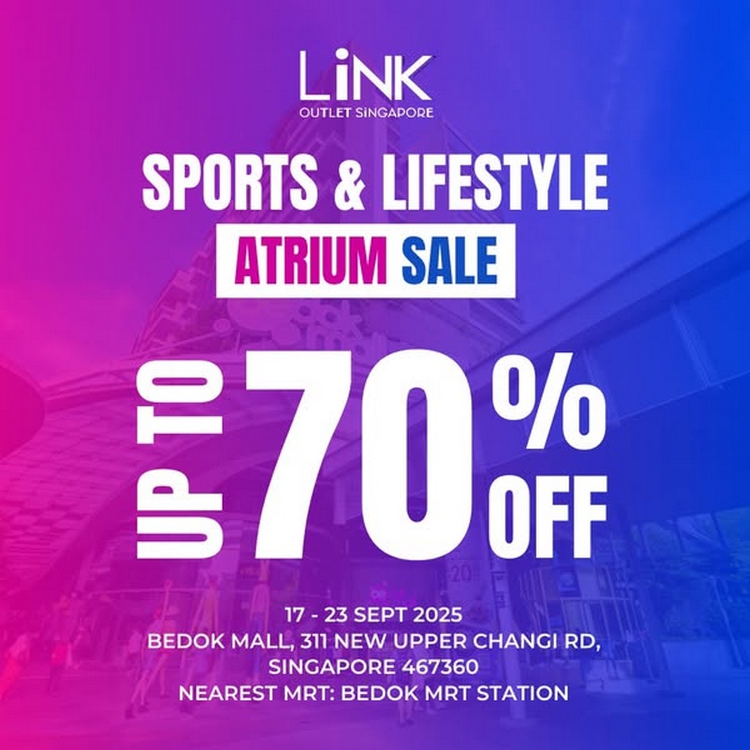 Whenever a major atrium sale pops up in one of Singapore’s busy neighbourhood malls, it usually attracts a good crowd — and for good reason. This September, there is an exciting opportunity for shoppers to stretch their dollar even further. The LINK Outlet Store is bringing a massive atrium sale to Bedok Mall, running from 17 to 23 September 2025, with discounts of up to 70% on popular international brands such as Adidas, Under Armour, Crocs, and many more.