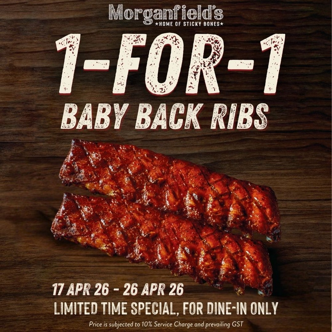 This 1-for-1 Baby Back Ribs promotion at Morganfield’s is the kind of offer that fits neatly into Singapore’s casual dining scene. It is not trying to reinvent anything, but instead focuses on what already works: generous portions, familiar flavours, and a sharing-friendly setup.
