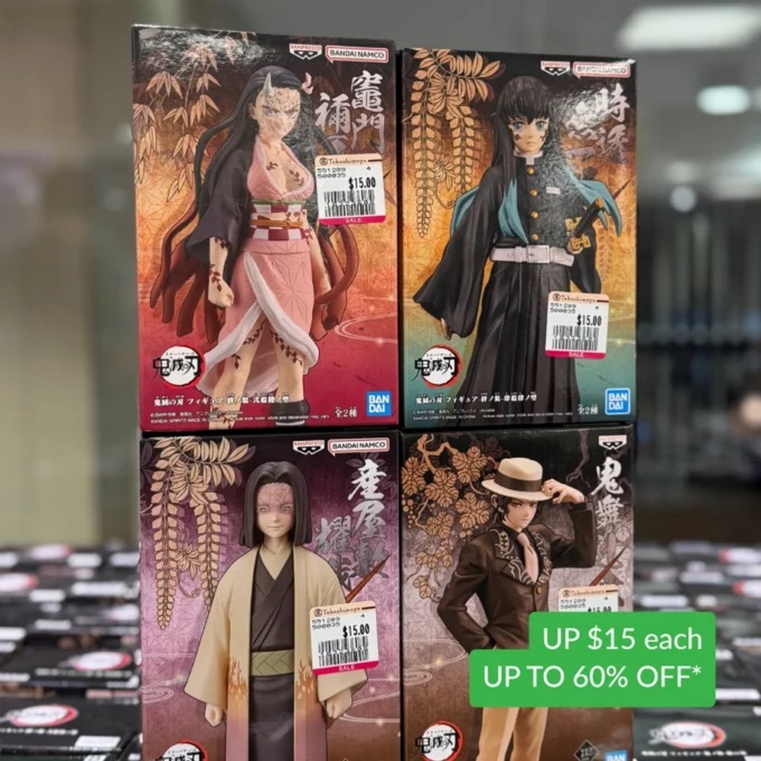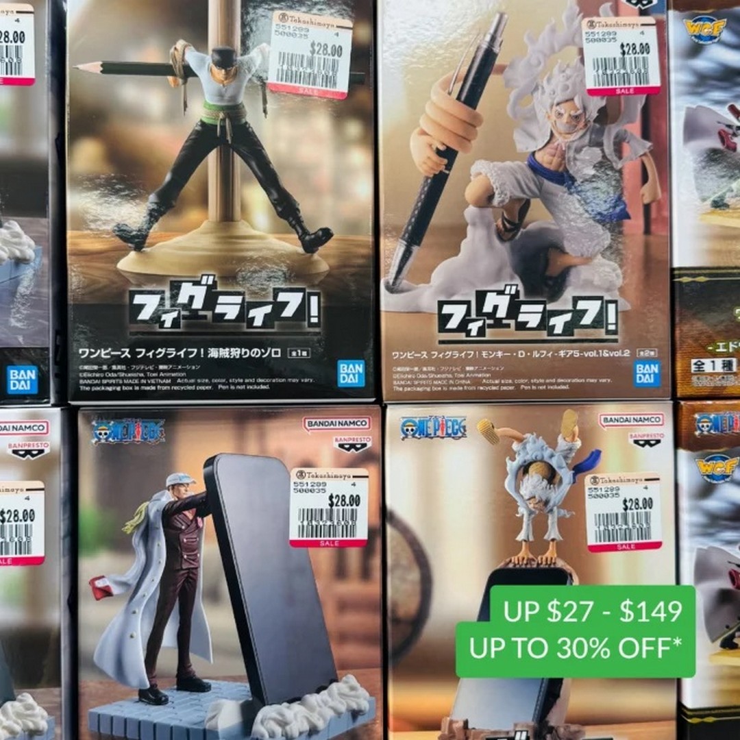 For collectors of figures, Banpresto items stand out with discounts of up to 60%, with prices starting from around $15. Popular anime franchises are well represented, including One Piece figures ranging from $27 up to $149 depending on rarity and size, as well as Naruto figures starting from $30. Demon Slayer merchandise is also available from as low as $5, making it one of the most accessible entry points for fans.
