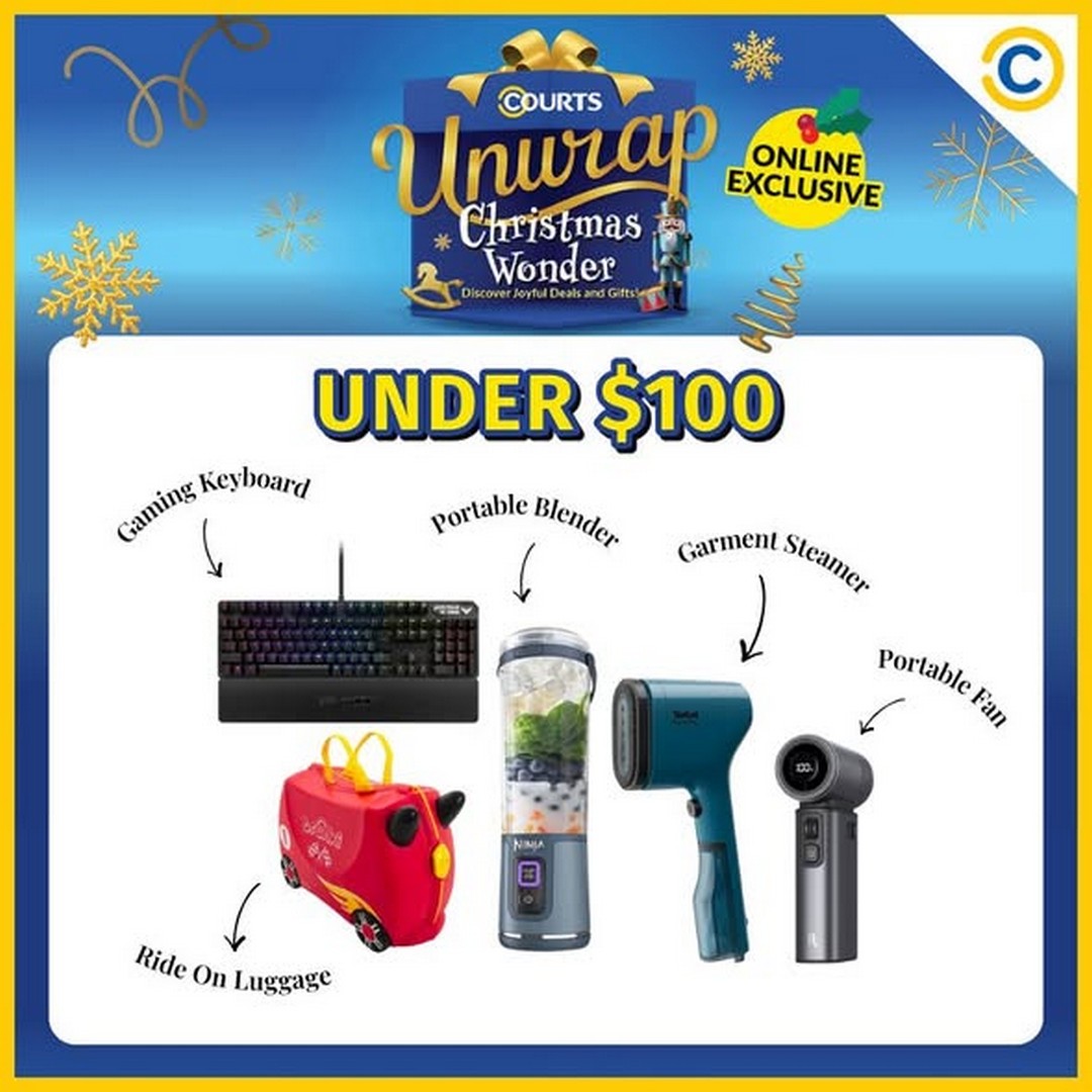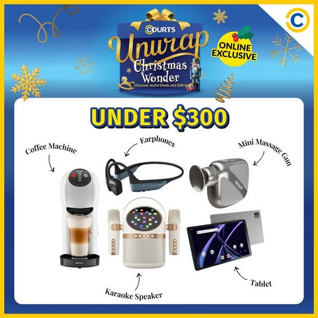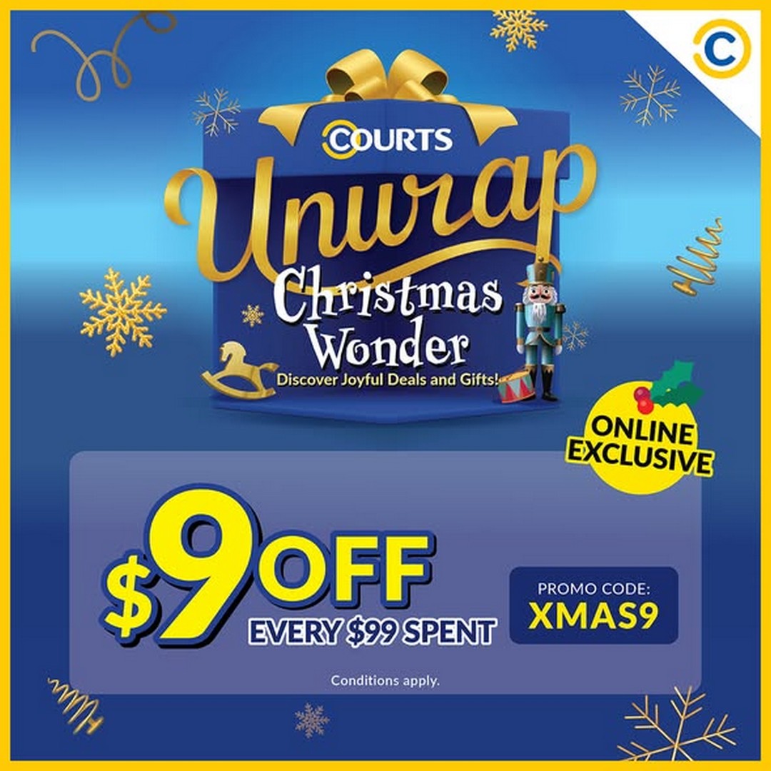 On top of these well-categorised gift ranges, COURTS is also offering an irresistible promotion to make Christmas shopping even sweeter. Customers can enjoy $9 off every $99 spent using the code XMAS9. This deal effectively stretches your budget further, allowing shoppers to pick up multiple gifts without worrying about overspending. For example, buying three gifts that total $297 would automatically reduce the price to $288 with this discount, saving you money that can be allocated to another purchase or even a festive treat for yourself.