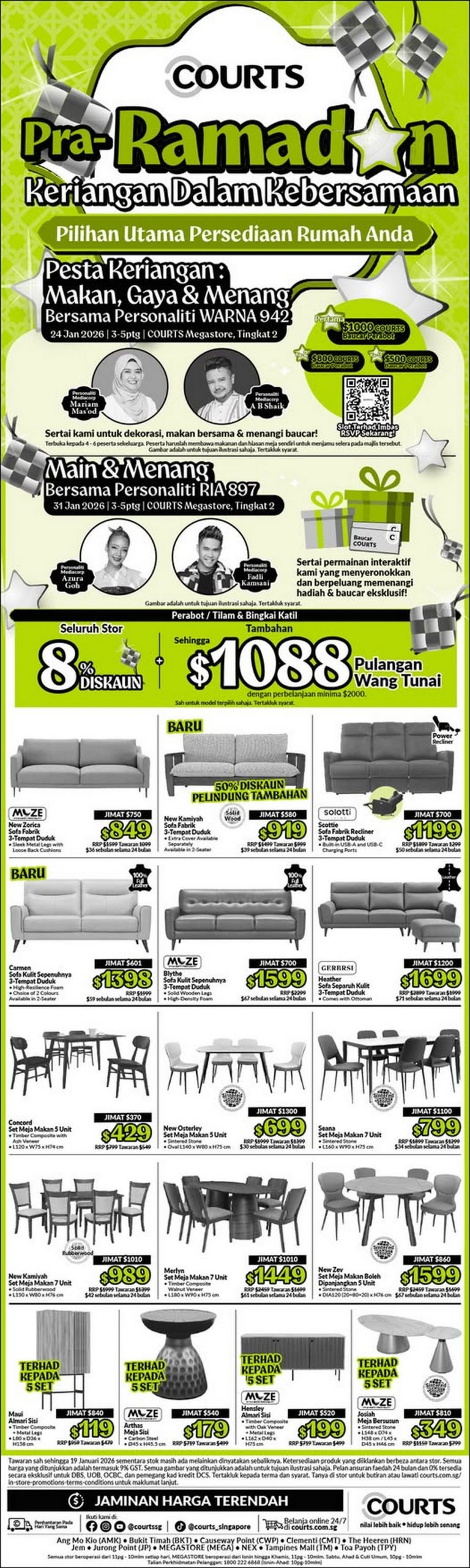 In conclusion, COURTS’ Pre-Ramadan Pesta Keriangan is more than just a sale—it’s a celebration of togetherness, lifestyle, and smart shopping. With an 8% storewide discount, a generous $1,088 cash rebate on qualifying purchases, interactive games, and a lively festive atmosphere, it’s designed to make shopping enjoyable, meaningful, and rewarding. Whether looking to refresh the home, hunt for bargains, or simply enjoy a festive outing with family and friends, this event offers a compelling reason to visit the Megastore. The combination of savings, entertainment, and the festive spirit ensures that every shopper leaves with both value and memorable experiences.