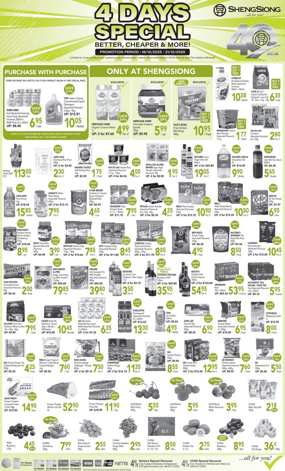 The Sheng Siong 4 Days Special Promotion runs from 18 to 21 December 2025 and is available across all Sheng Siong outlets in Singapore. Shoppers are encouraged to visit early to grab their favourite deals, as items are available while stocks last.
