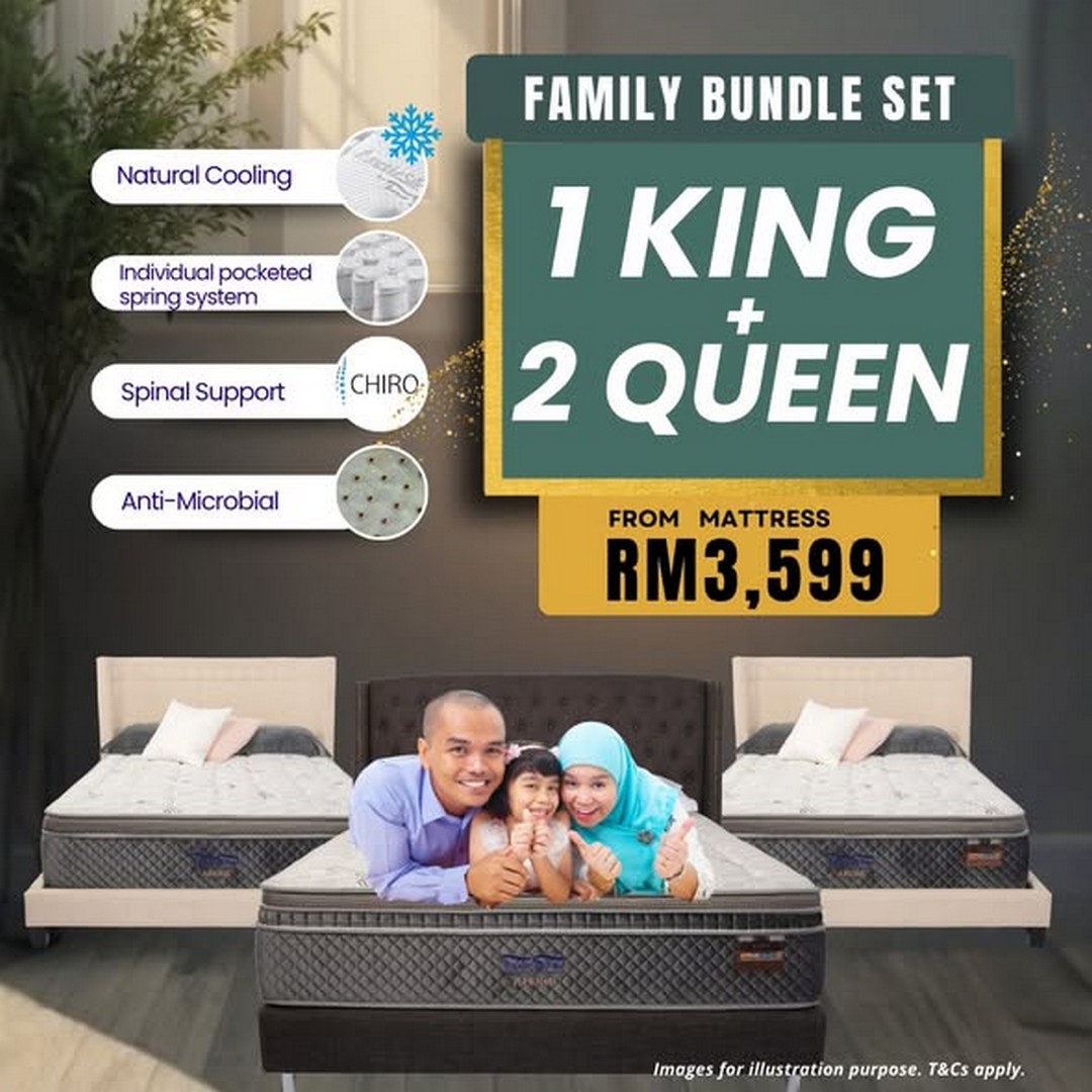 Beyond that, the Family Bundle option priced from just RM1,999 for three mattresses also stands out. While the price is listed in Malaysian Ringgit, the value translates clearly regardless of currency, especially when compared to the typical cost of purchasing mattresses individually. A three-piece bundle at this price point is quite rare and particularly appealing for larger families, landlords furnishing rental units, or even individuals who simply enjoy having flexibility when planning future room layouts. Bundled sets remove much of the financial hesitation people usually have when buying multiple mattresses at one go.