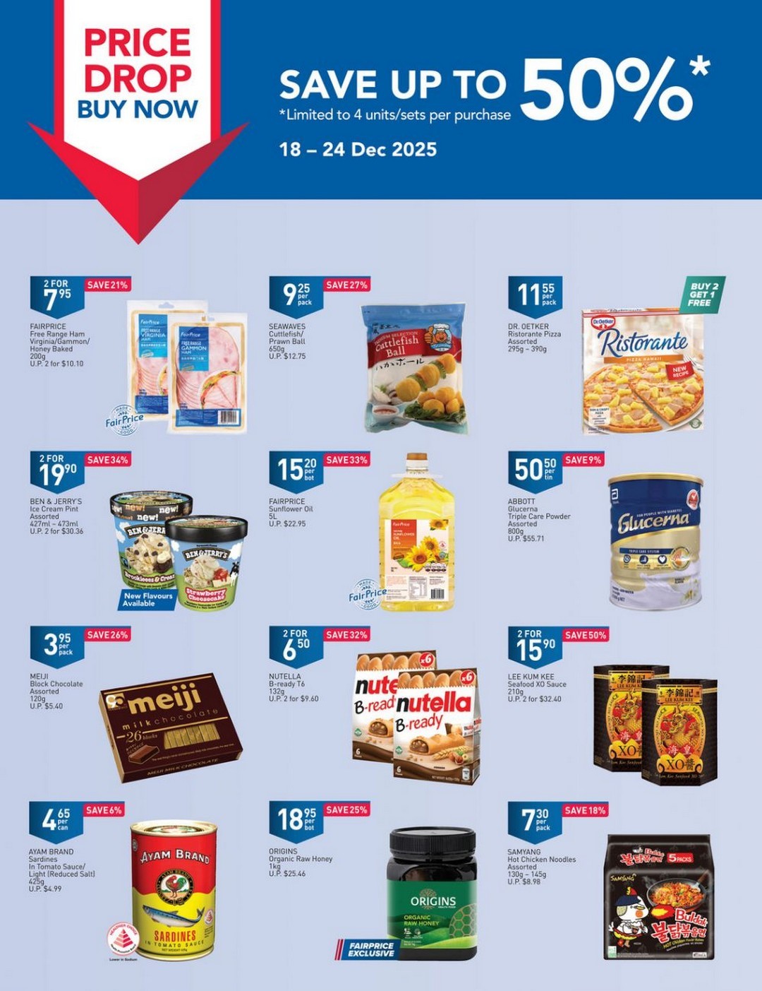 Don’t miss this chance to make your festive season more enjoyable and your weekly shopping much more affordable. Whether you’re looking for food, beverages, personal care, or household essentials, FairPrice’s Must Buy Deals have something for everyone. Mark your calendar and head to your nearest NTUC FairPrice outlet from 18 to 24 December 2025 to enjoy unbeatable savings before the holidays.