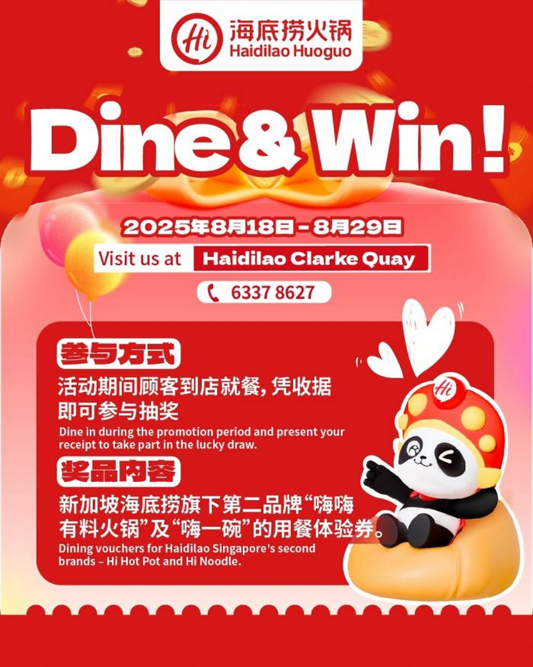 How to Participate: Dine-in at Haidilao Clarke Quay, present receipt to enter lucky draw