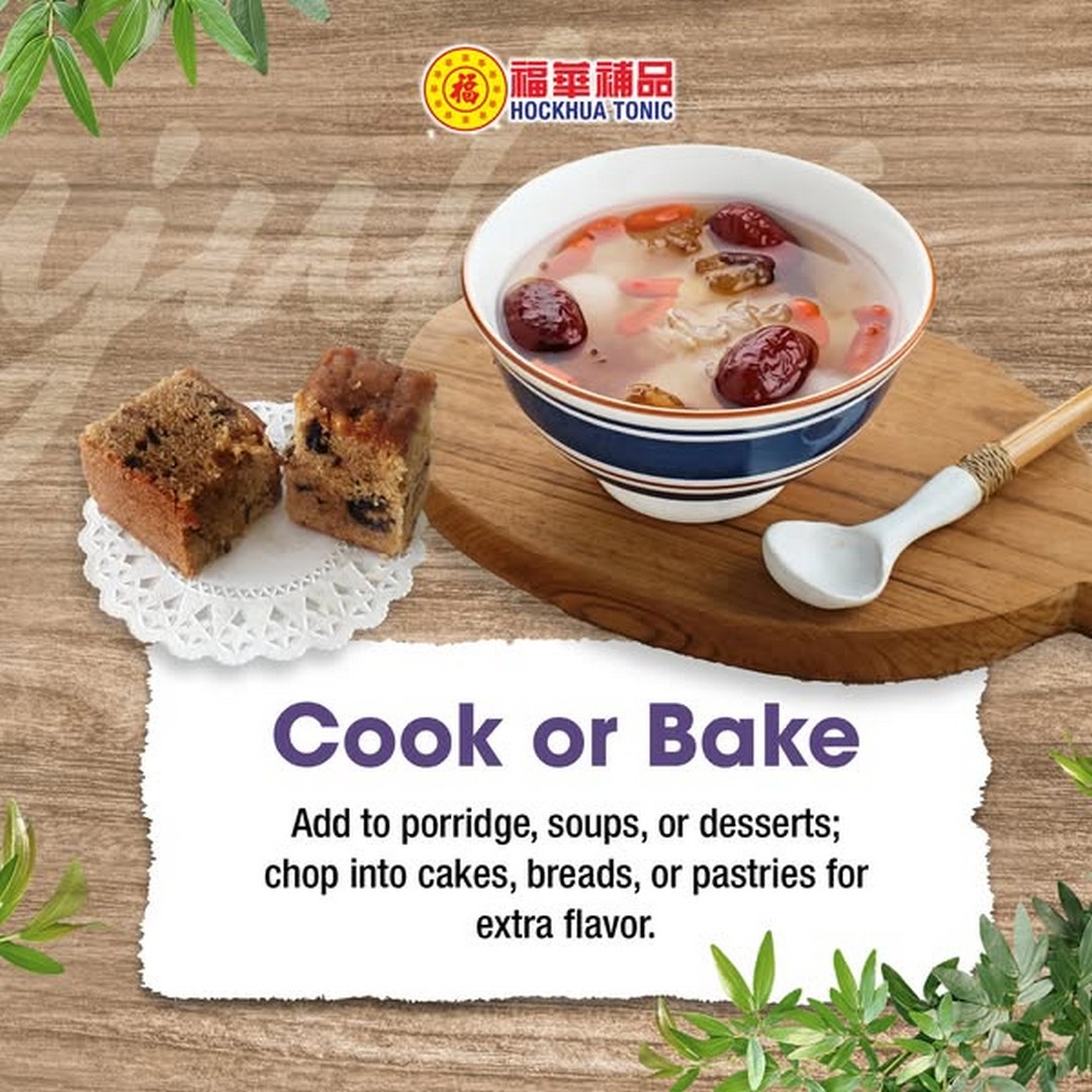 One of the reasons Hockhua Tonic’s Amethyst Black Jujubes stand out is their natural sweetness. Unlike heavily processed snacks that rely on added sugars, these jujubes provide a gentle, naturally satisfying flavour that complements teas and desserts beautifully. Imagine steeping a handful of these jujubes in hot water to create a soothing, mildly sweet tea — perfect for relaxing after a long day or as a gentle warm-up during the cooler Singapore evenings.
