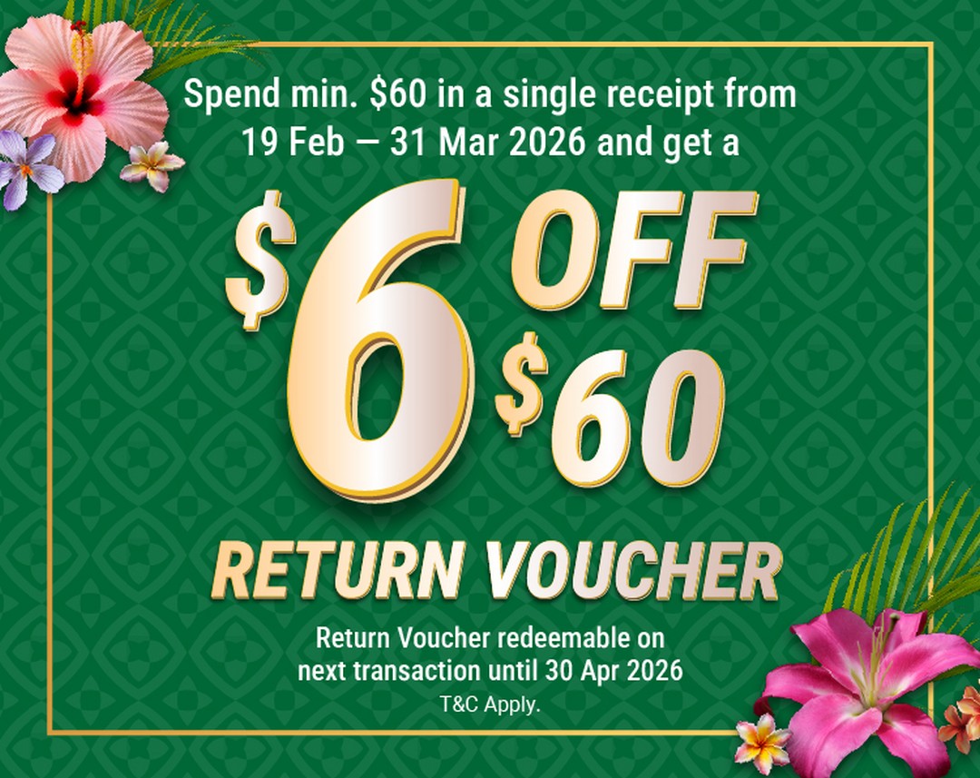As the festive season approaches, planning your Hari Raya groceries is no small feat. Between arranging visits, preparing delicious dishes, and stocking up on household essentials, your shopping cart can fill up faster than expected. Luckily, Giant Singapore has introduced an irresistible reason to get your grocery list ready early this year. From 19 February to 31 March 2026, shoppers who spend a minimum of $60 in a single receipt will receive a $6 OFF $60 Return Voucher—a simple yet effective way to get rewarded for your regular shopping.
