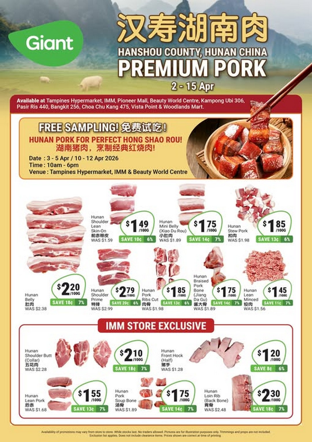 Food lovers in Singapore have a new reason to get excited this April. Giant Singapore is rolling out a limited-time promotion featuring their Premium Hunan Pork, perfect for recreating some of the country’s most beloved dishes at home. For anyone who enjoys a hearty, flavour-packed meal, this is an opportunity they won’t want to miss. From 2nd to 15th April 2026, selected Giant stores across the island will be offering FREE sampling of this premium meat, letting shoppers taste and experience the rich flavours of authentic Hunan-style pork before making a purchase.