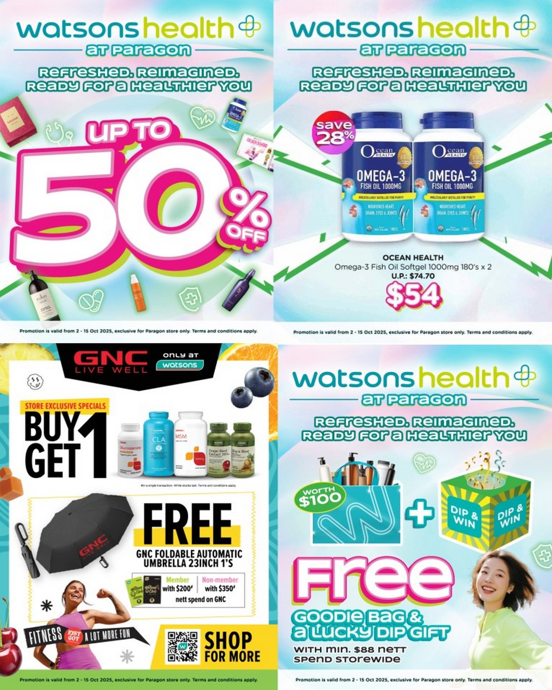So, mark your calendars and plan your visit to Watsons Health @ Paragon. Between 2 and 15 October, immerse yourself in a health-focused shopping experience like no other. Explore, discover, and enjoy all the perks of their grand reopening — it’s a one-stop destination for anyone serious about wellness and looking for great value.