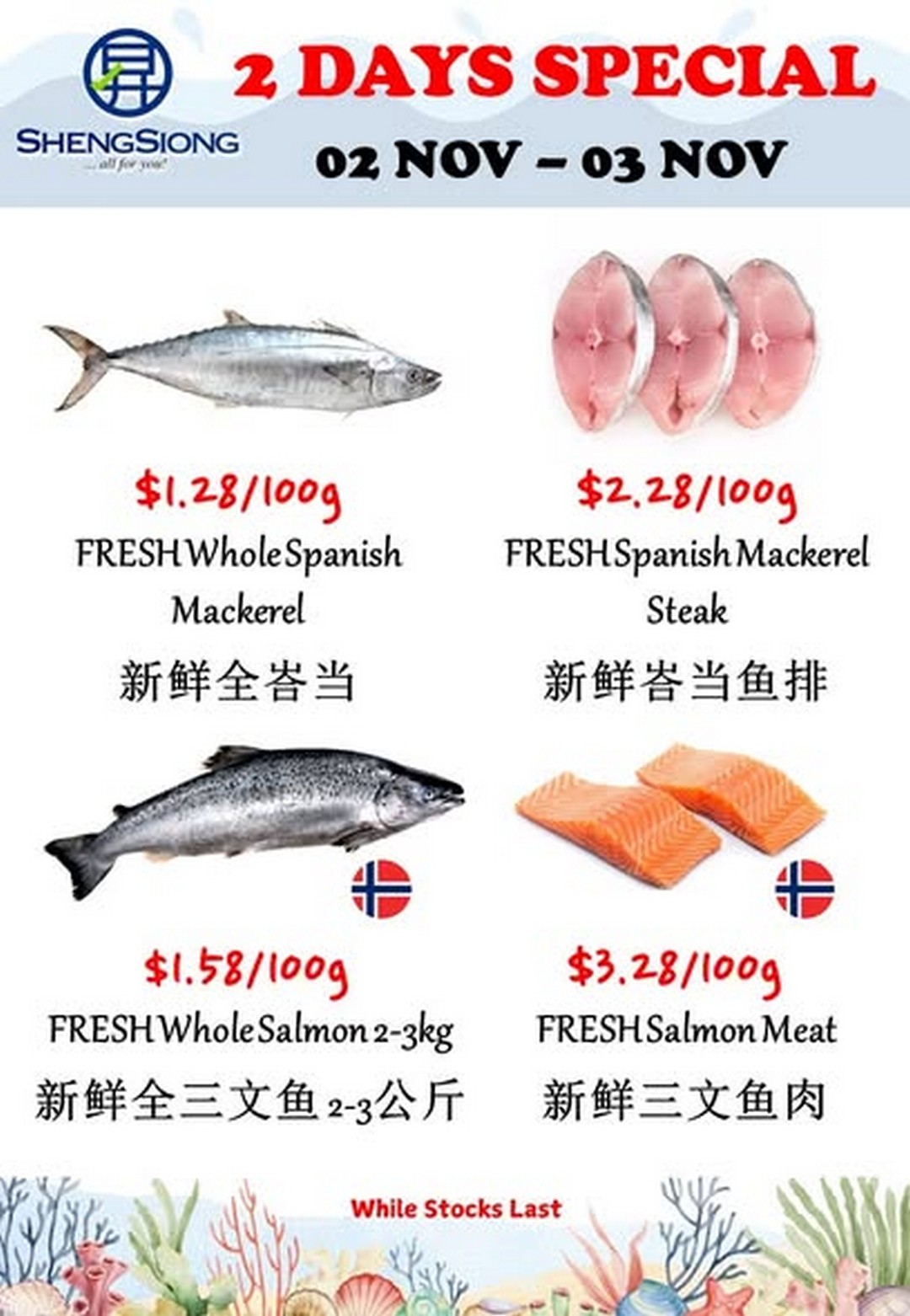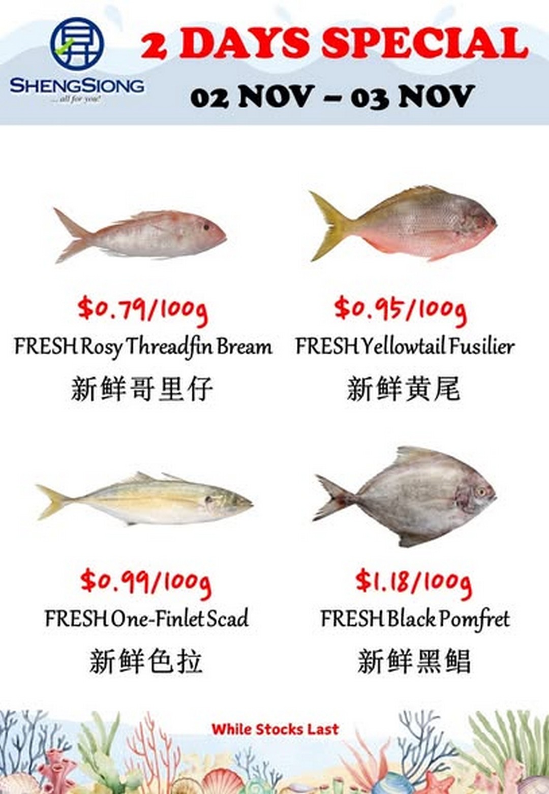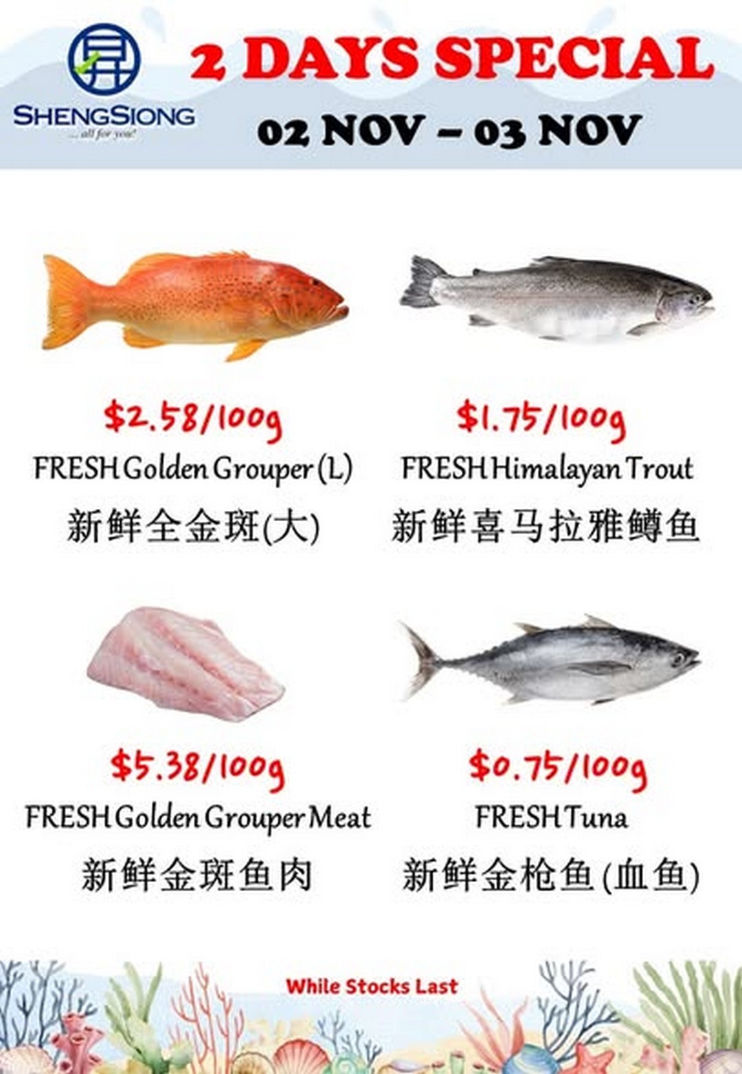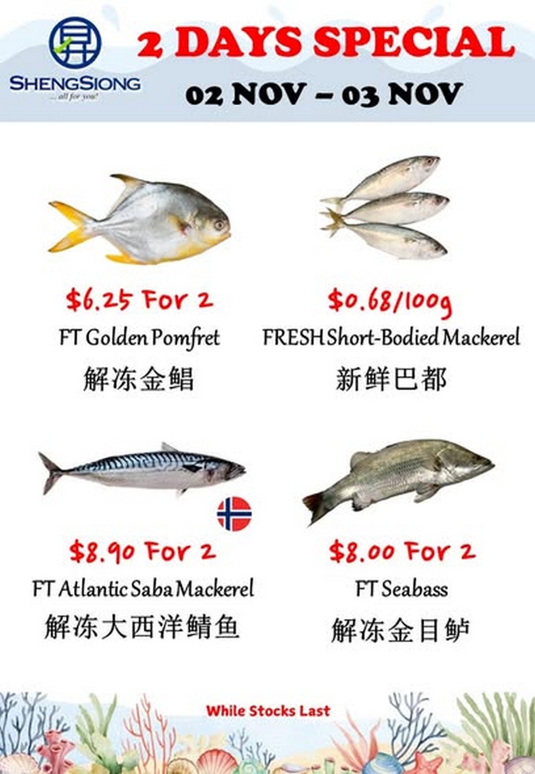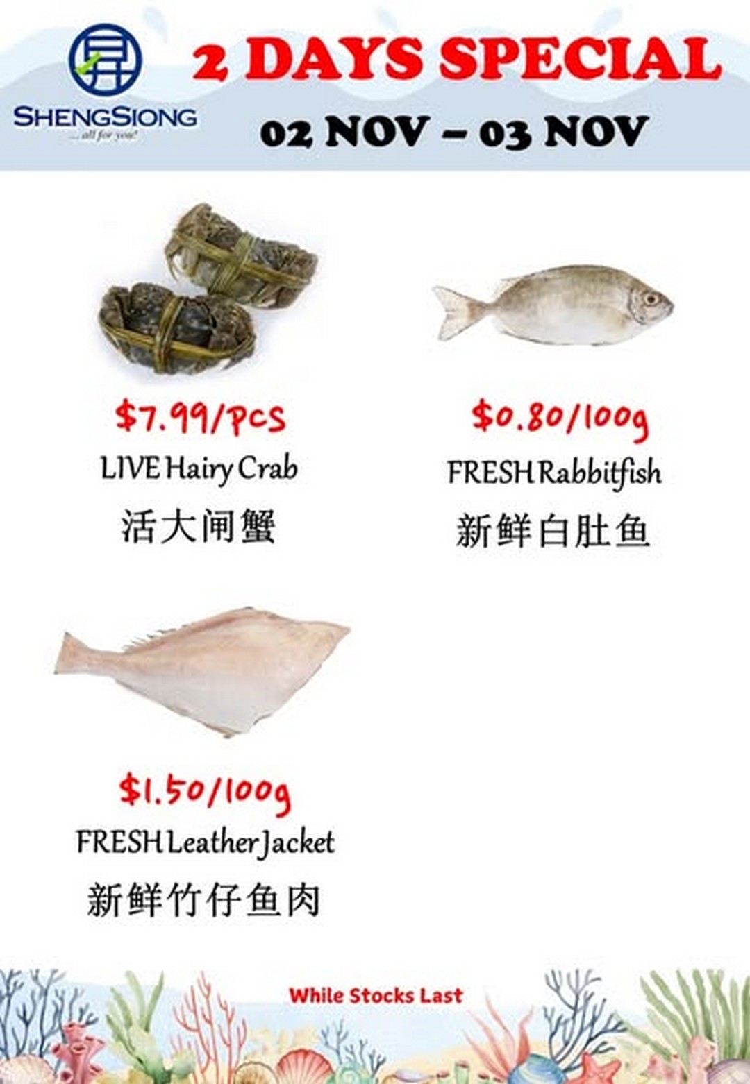 Sheng Siong’s seafood promotions have always attracted attention for their exceptional value and high quality. Whether it’s freshly caught prawns, squids, or crabs, their seafood section has consistently impressed customers with a balance of freshness, affordability, and variety. This upcoming two-day promotion once again promises that same satisfaction — with an even wider range of seafood specials at prices that make stocking up truly worthwhile.