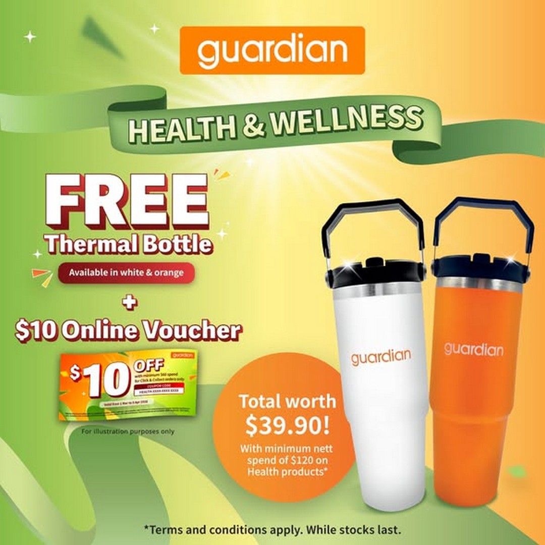 For those who are serious about health, Guardian has sweetened the deal further. Spend $120 on health products, and shoppers will receive a FREE gift bundle worth $39.90, which includes a stylish thermal bottle and a $10 online voucher. Whether you’re heading back to work, hitting the gym, or simply trying to maintain a healthier lifestyle, this is a thoughtful bundle that can support daily hydration and wellness routines.