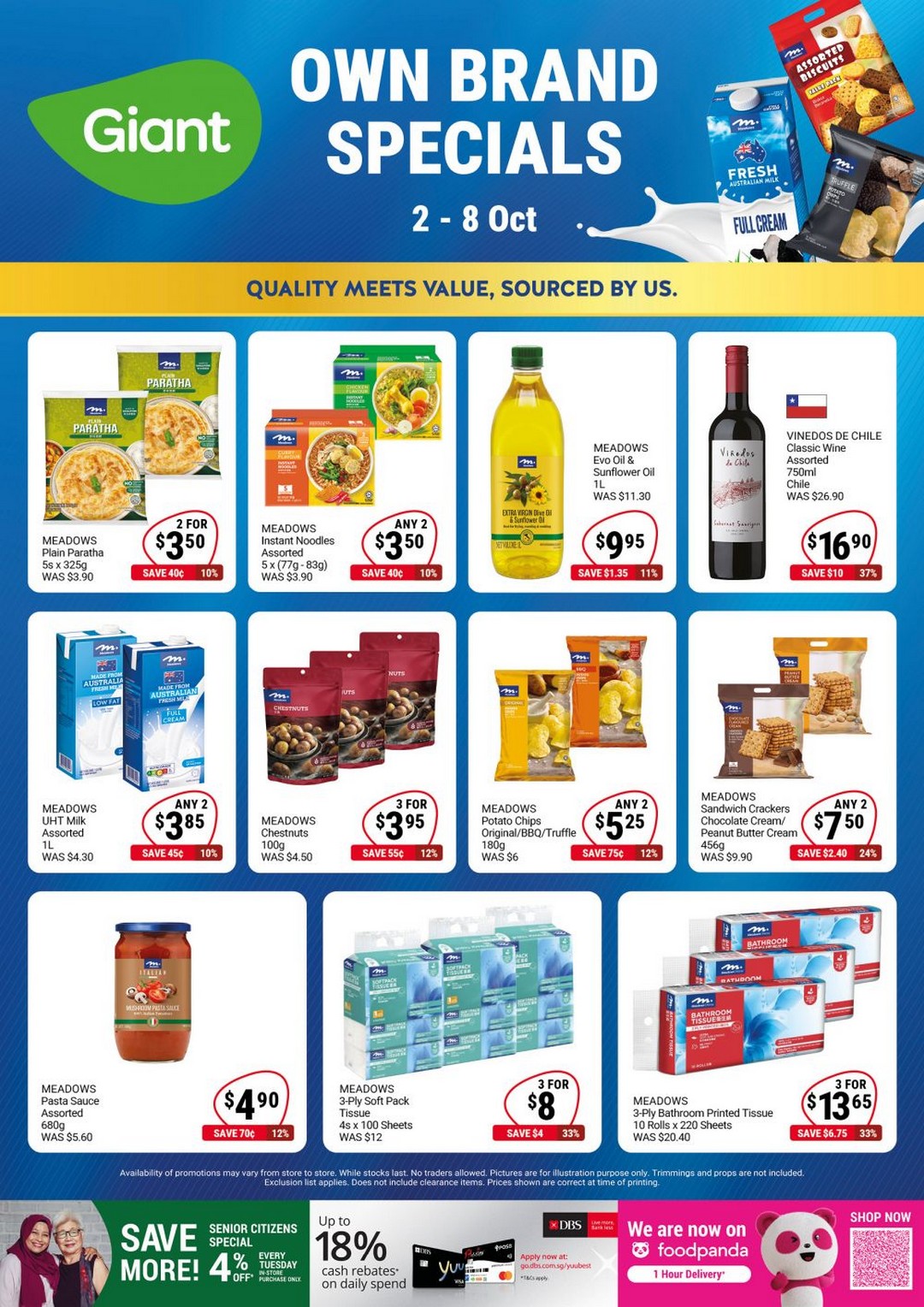 In conclusion, the Giant Own Brand Specials from 2 to 8 October 2025 offer a practical and enjoyable way for Singaporeans to shop smart. From essential groceries to indulgent treats and household necessities, there’s a wide range of items to explore and save on. Whether they are stocking up for the week, preparing for family meals, or simply enjoying the thrill of a good bargain, the promotion is well worth their attention. Visiting Giant during this week ensures access to quality Meadows products at discounted prices, making shopping both convenient and economical.