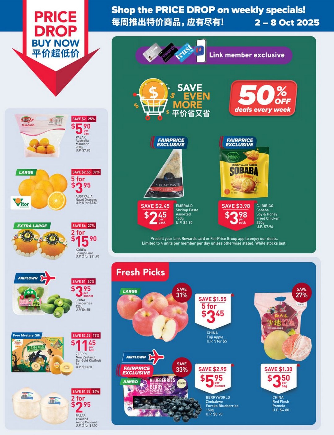 So, from 2 to 8 October 2025, it is time to plan a trip to your nearest FairPrice outlet. Stock up on your fruits, vegetables, and other weekly essentials, and enjoy the satisfaction of knowing you have stretched your dollar a little further.