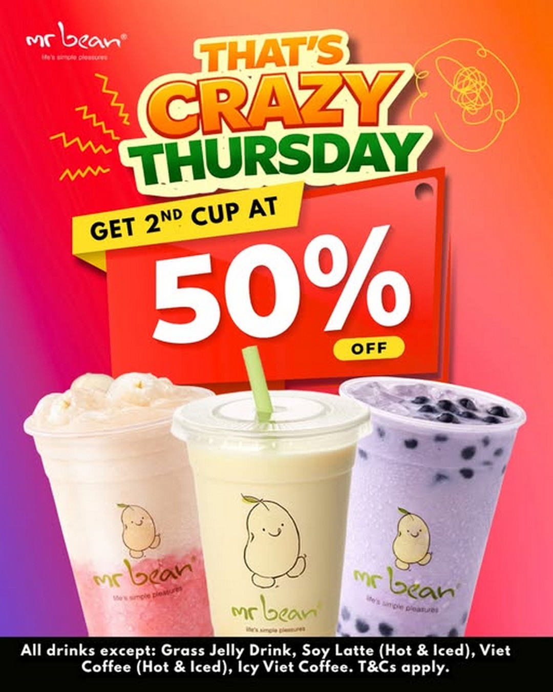Mr Bean has long been known for their quality soy-based drinks, offering a range of flavours that appeal to both the traditionalist and the adventurous. For this Crazy Thursday promotion, it’s all about sharing the joy or simply doubling your own caffeine hit without breaking the bank. Imagine walking in and ordering your favourite classic soy drink, only to find out that your second cup—whether it’s a creamy matcha or a nutty almond flavour—is available at 50% off. It’s an absolute steal, especially in a city where quality drinks can sometimes carry a steep price tag.